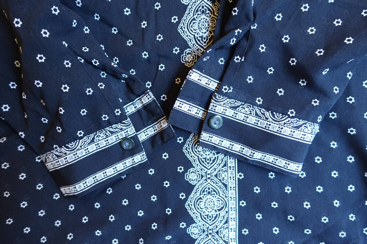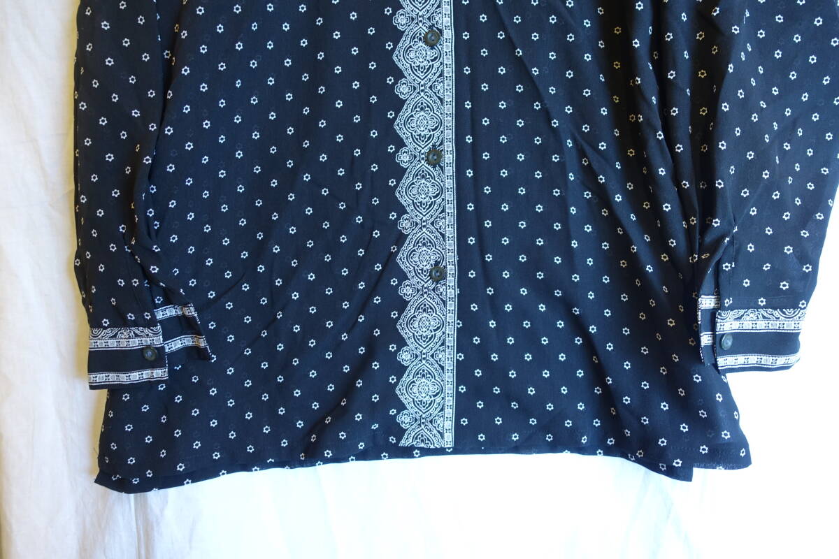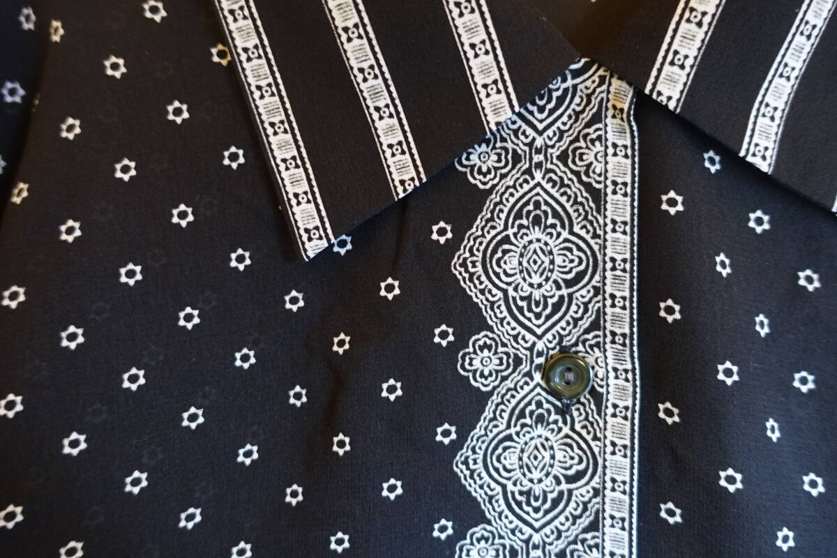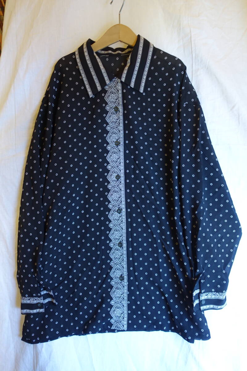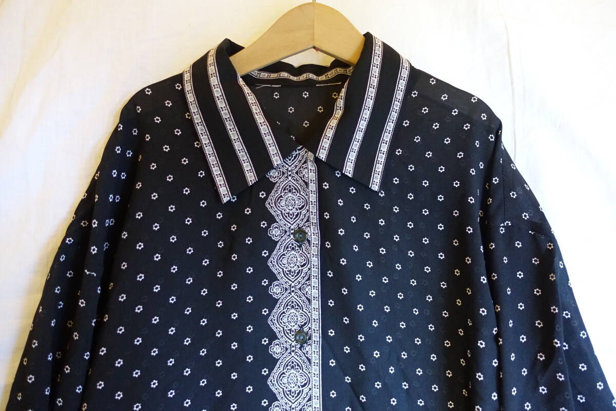 ○[70s80s90s vintage ヴィンテージ 黒 ドット オリエンタル レトロシャツ]USED古着 昭和レトロ・モダン・モッズ