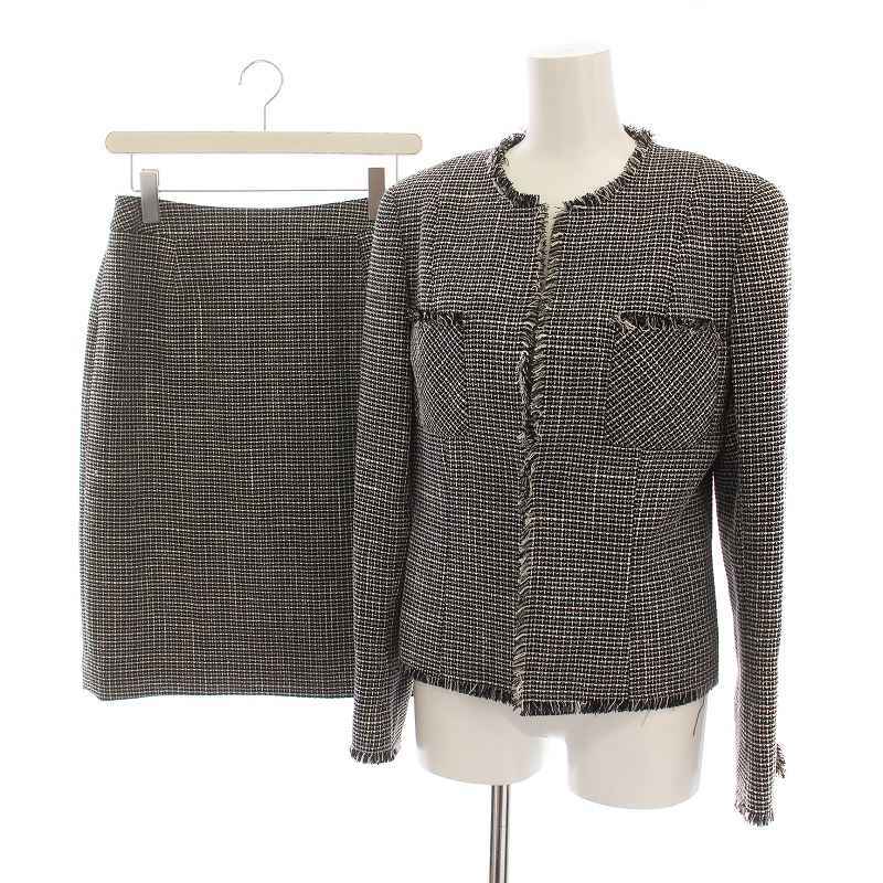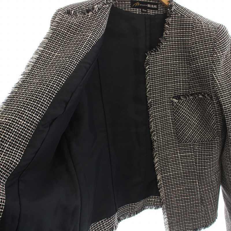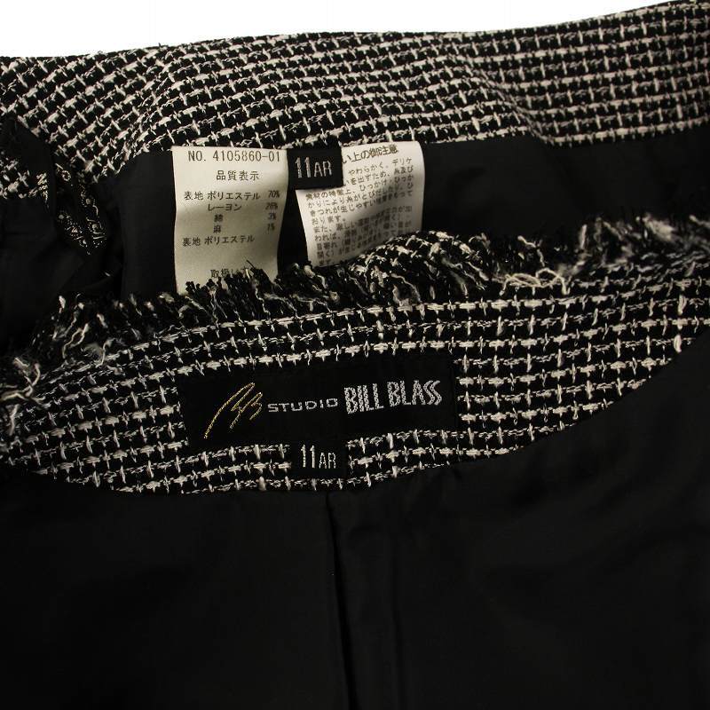 ビル ブラス BILL BLASS スーツ セットアップ ツイード ジャケット ノーカラー スカート ひざ丈 11AR 黒 白 /YM レディース