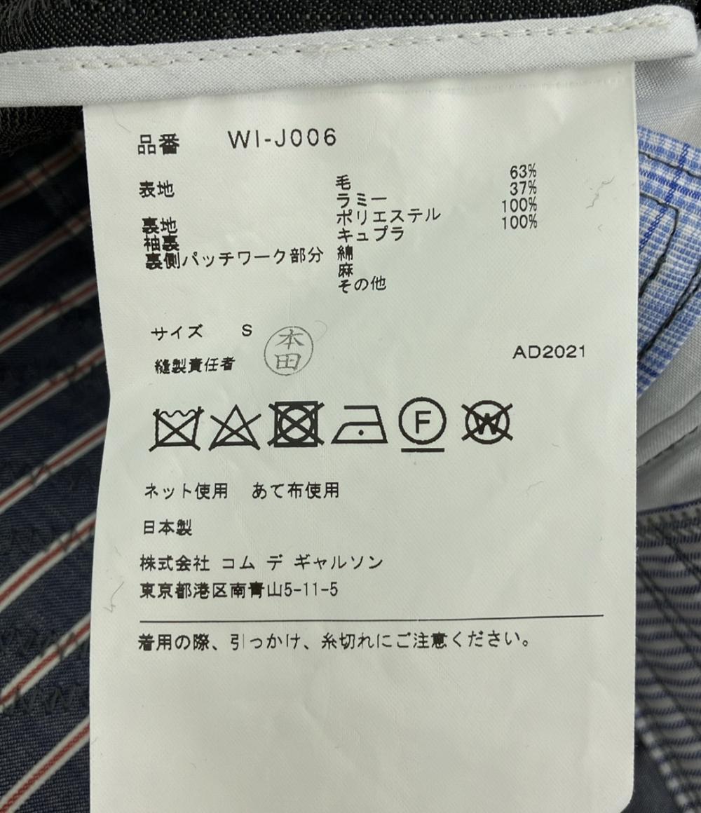| アイテム名 | ジュンヤワタナベ テーラードジャケット メンズ SIZE S S JUNYA WATANABE |