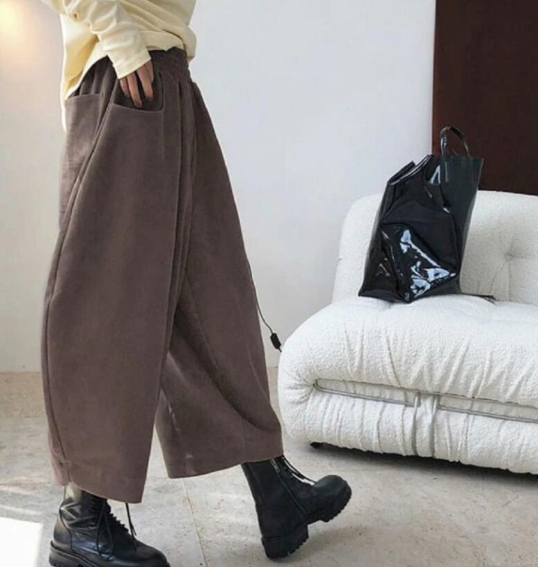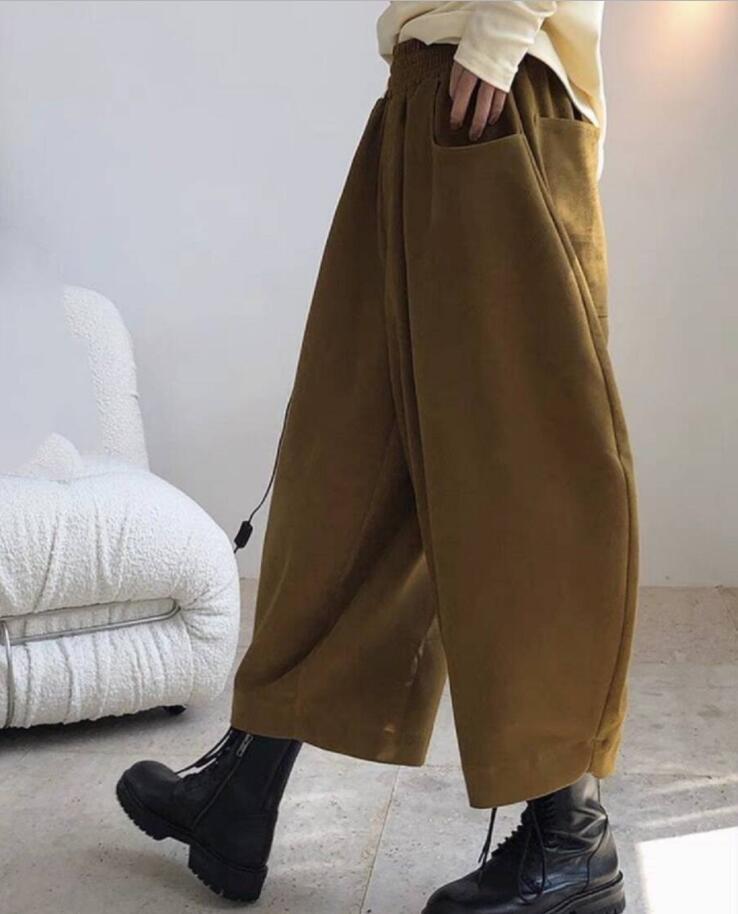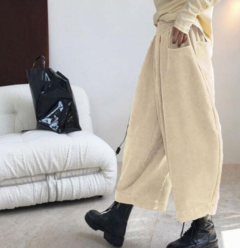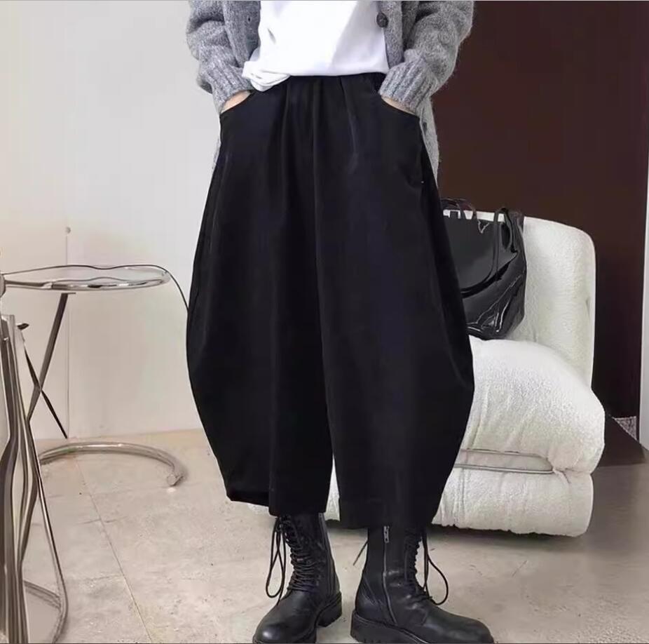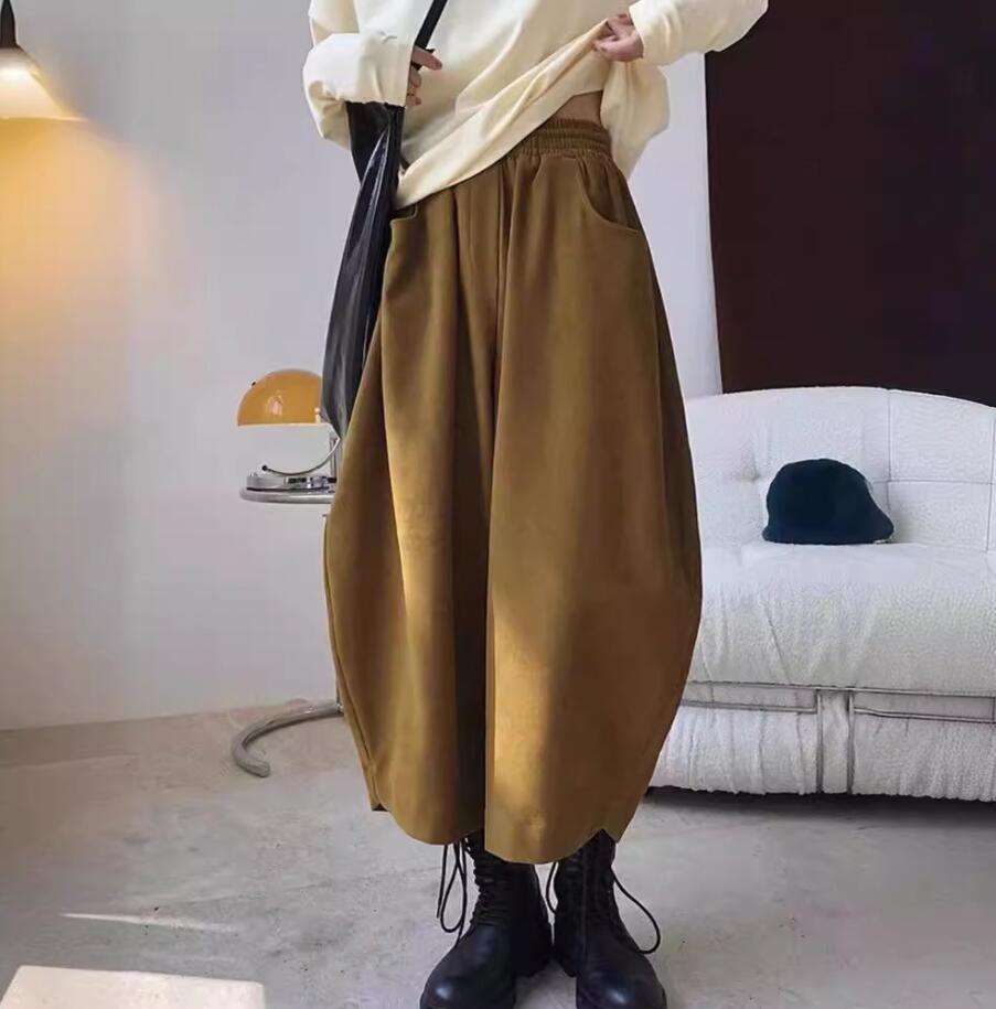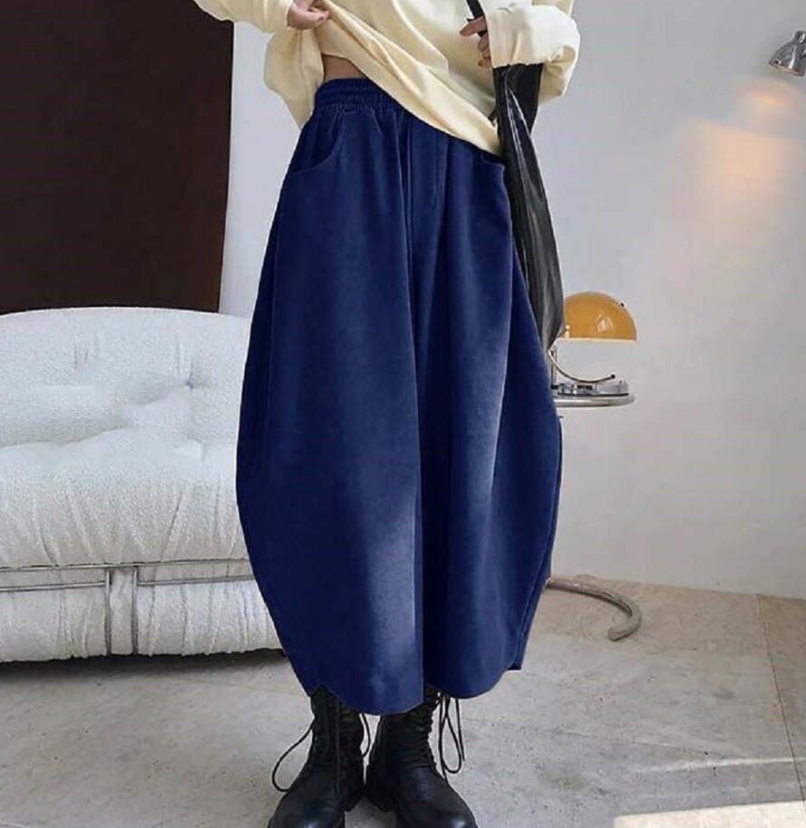 2025新品/人気推薦/ 秋冬 ぶかぶか パンツ ポワーンと広がるバルーンパンツ 大きいサイズ ウエストゴム ゆったり ワイドパンツ/青