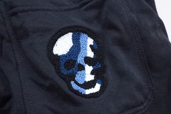 STUD MUFFIN ◆ スカル イージー ジョガーパンツ 黒/青 サイズ2 アンクル丈 ストレッチ サガラ刺繍 カモフラ 迷彩 スタッドマフィン ◆MU12