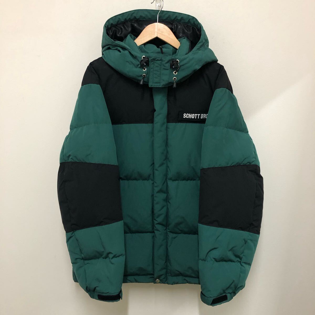 (26)SCHOTT ショット CLASSIC 2TONE DOWN JACKET クラシック 2トーン ダウンジャケット XL グリーン 緑 ブラック 黒 ナイロン 3122069