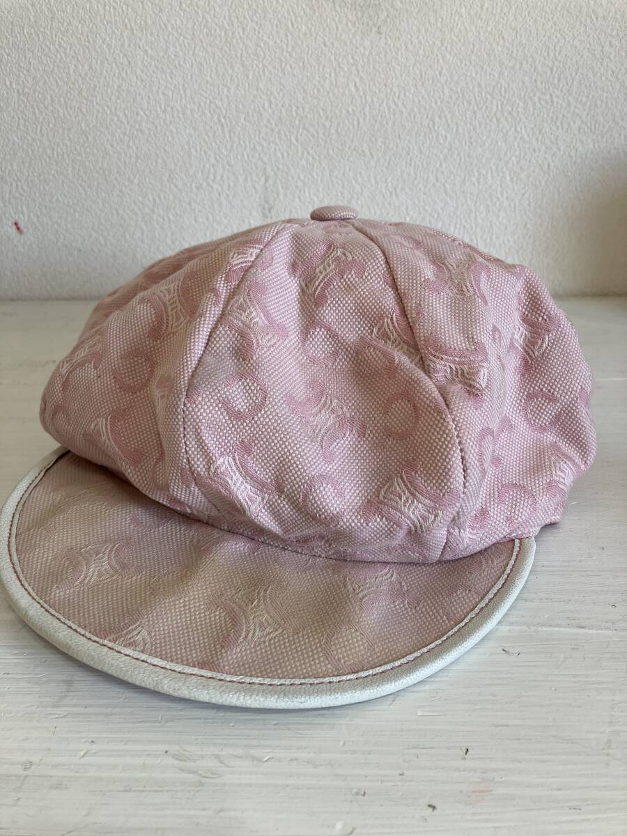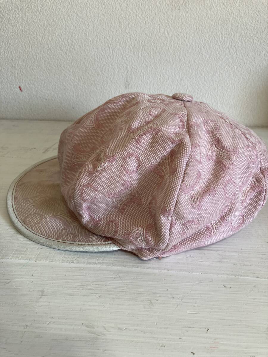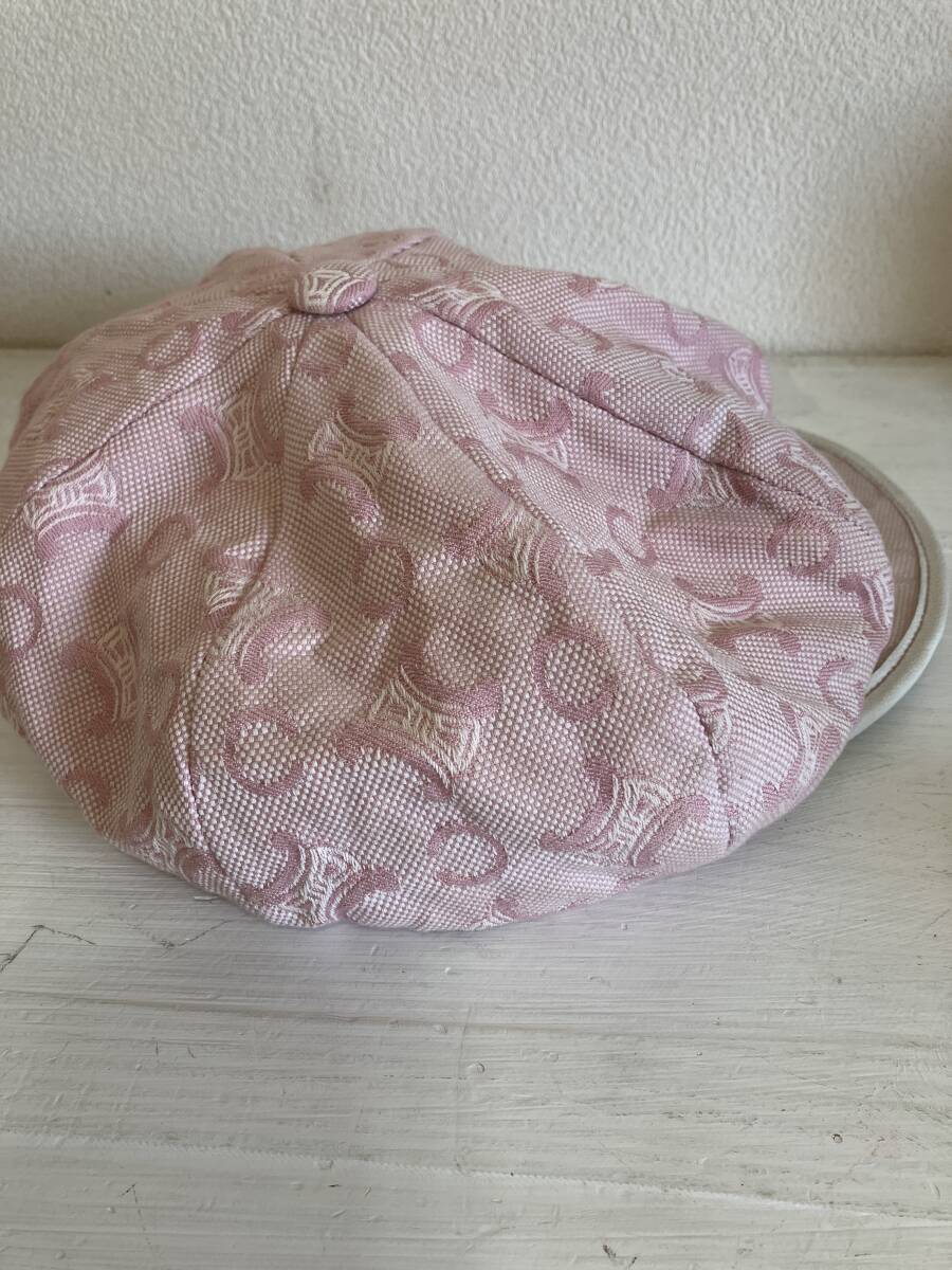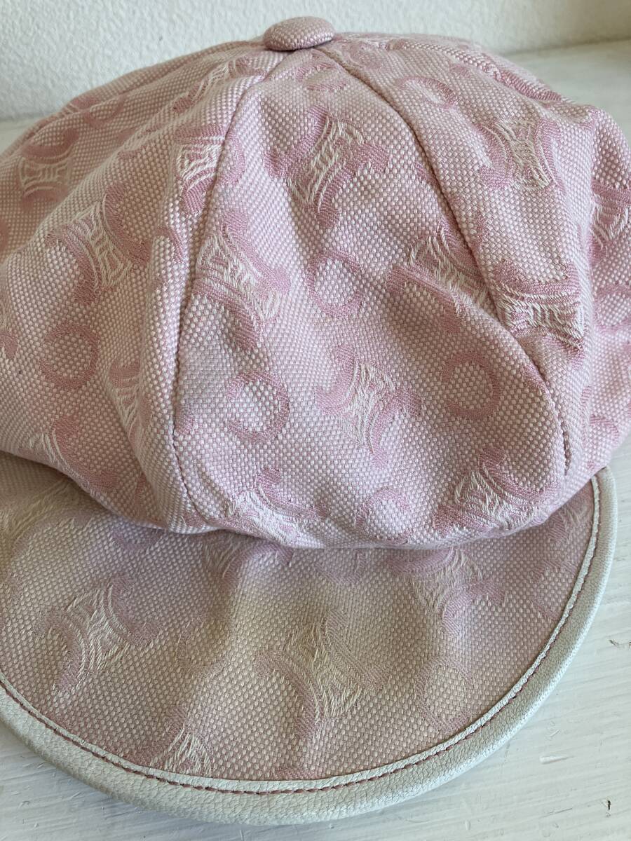 即決 2000年代初頭 OLD CELINE オールドセリーヌ ヴィンテージ Cマカダム キャスケット キャップ 帽子 ピンク レディースM 内周役57㎝