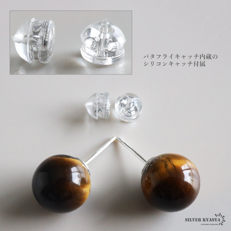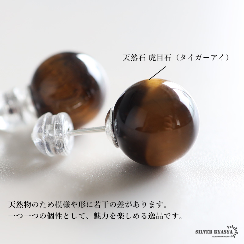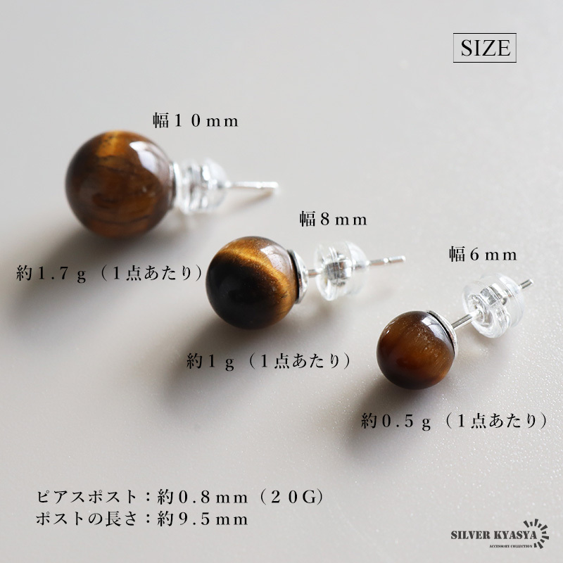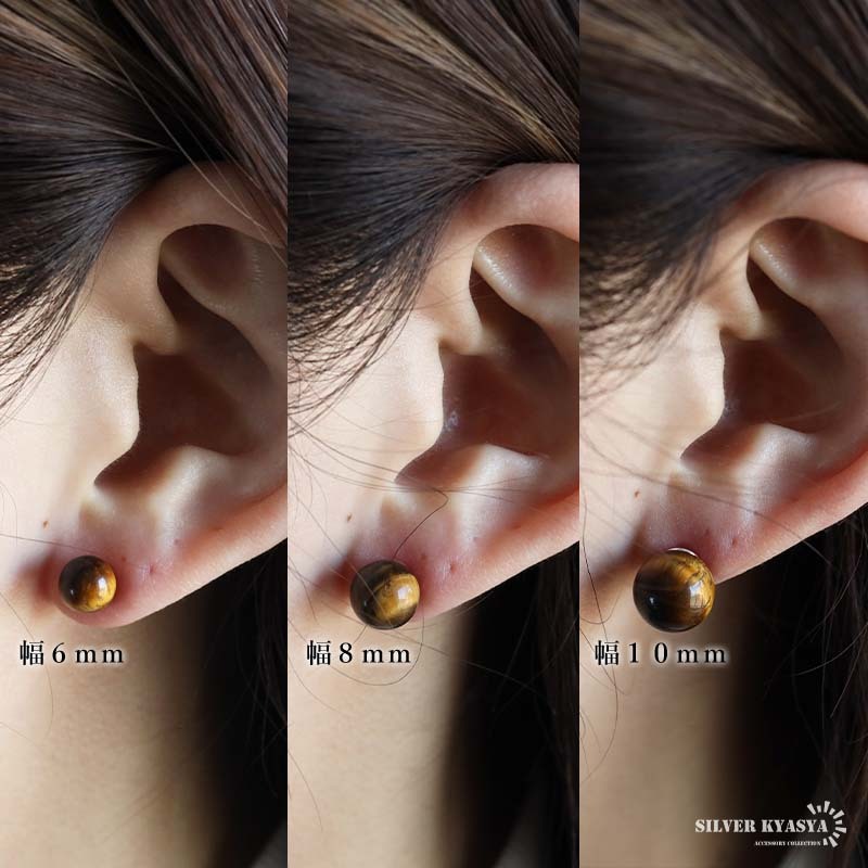 虎目石(タイガーアイ)をセットしたピアス。自然が生んだ金色と黄褐色の模様が魅力的。3種類のサイズからお選びいただけます。