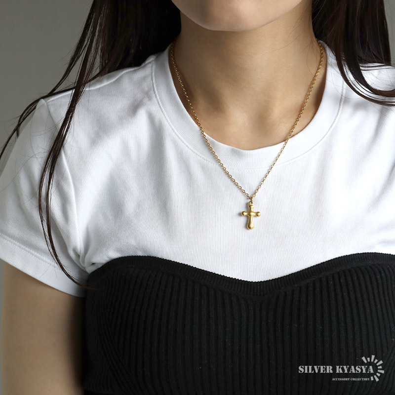 | 商品概要 | ■ITEM DETAIL ぷっくりとしたフォルムが可愛いクロスネックレス。4面カットを施したあずきチェーンが光を反射させ、華やかに輝きます。 ■ステンレス素材を使用 金属部分は頑丈なことで知られるステンレス素材を採用。耐久性はもちろん耐水性も高く水場での着用も可能。金属アレルギーも出にくいとされている金属です。 |