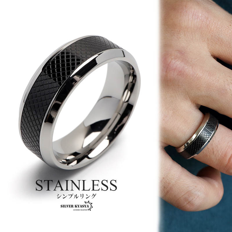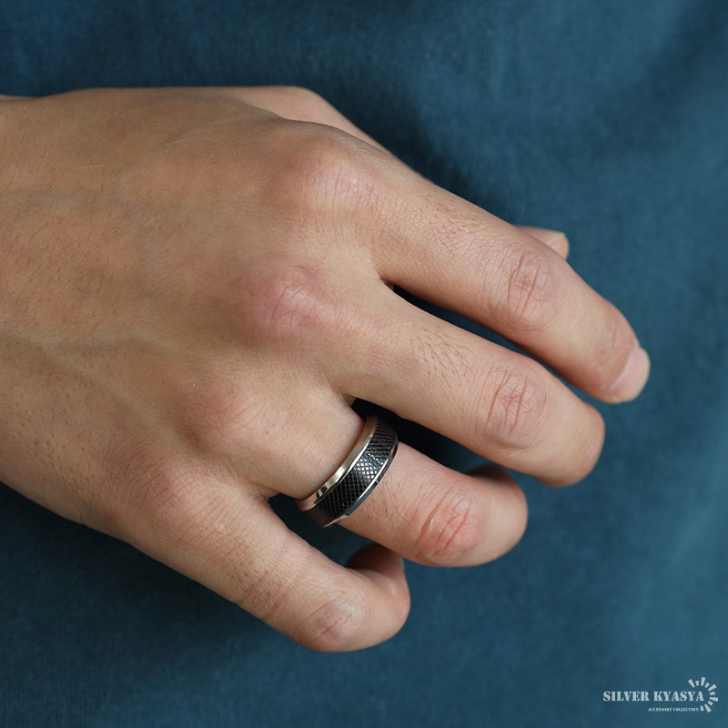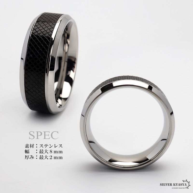 | 商品概要 | ■ブラック×シルバーリング ブラック地にメッシュ模様が刻まれたワイドリング。黒×シルバーがスタイリッシュな雰囲気を演出するアイテム。シンプルで使い勝手も◎ ■ステンレス素材を使用 金属部分は頑丈なことで知られるステンレス素材を採用。耐久性はもちろん耐水性も高く水場での着用も可能。金属アレルギーも出にくいとされている金属です。 |