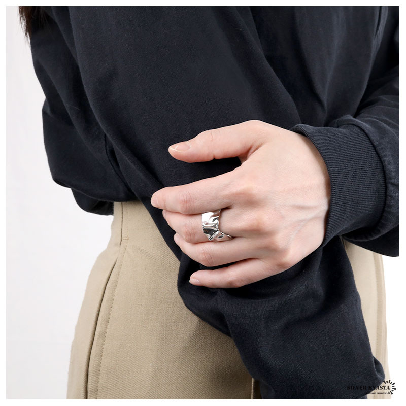■くしゃっとしたフォルムがアンティークな雰囲気を持つ、お洒落度を高めてくれるリング。