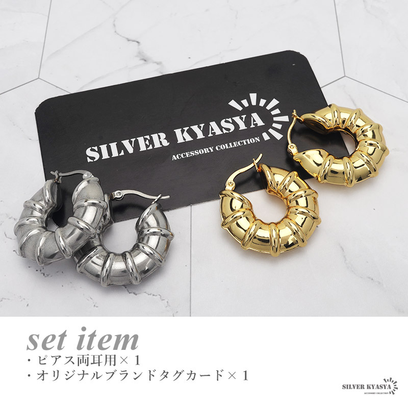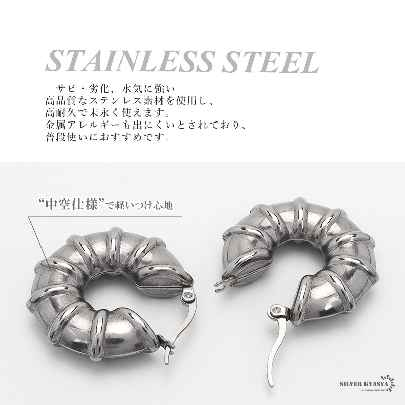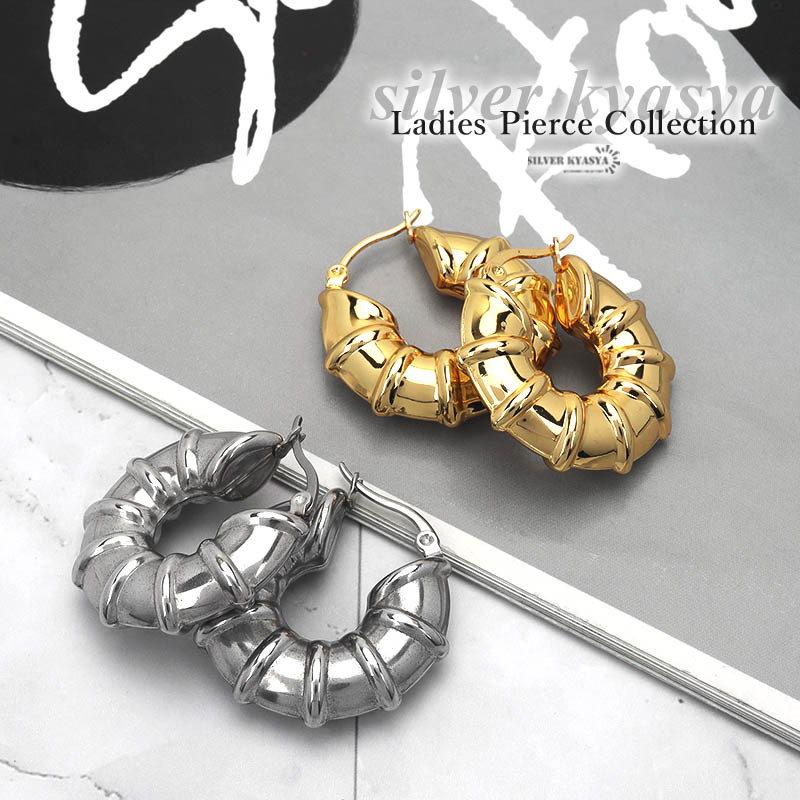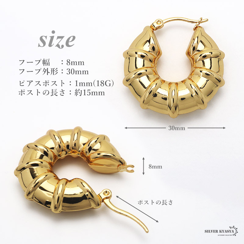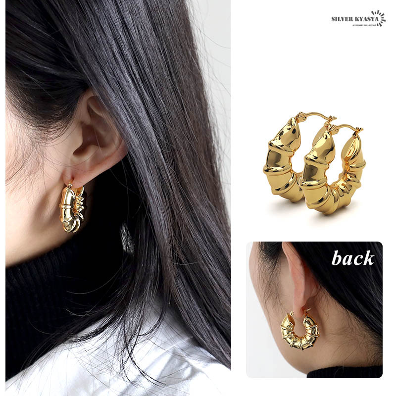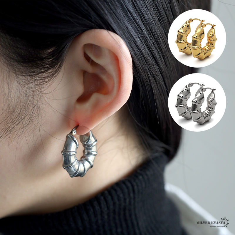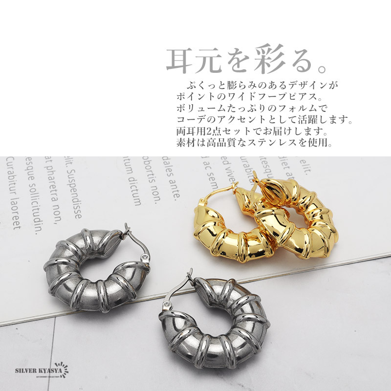 ぷくっと膨らみのあるデザインがポイントのワイドフープピアス。ボリュームたっぷりのフォルムでコーデのアクセントとして活躍します。