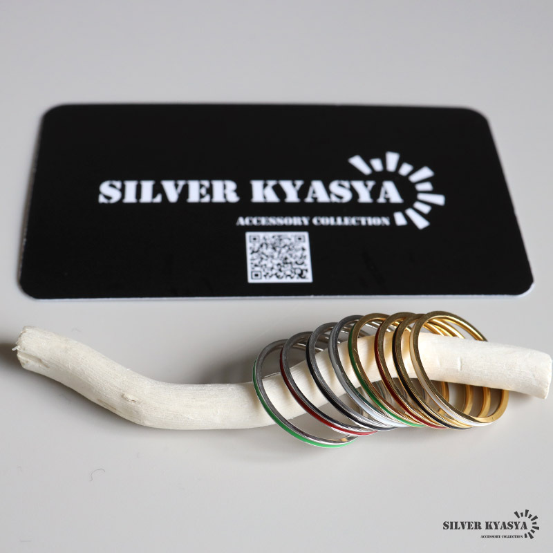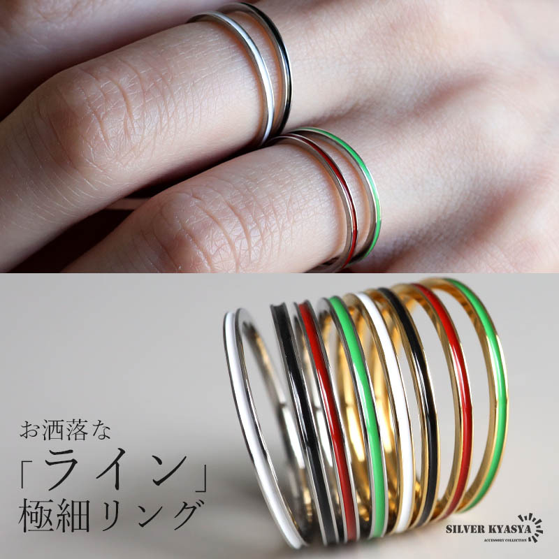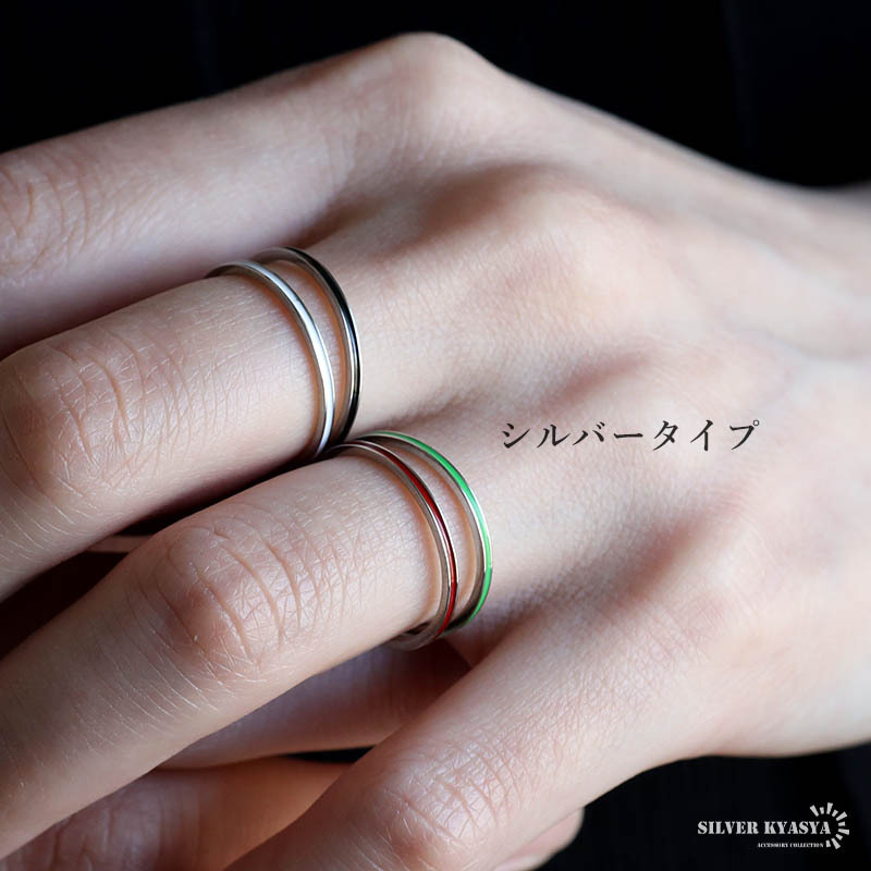 極細のフォルムにカラフルなラインを取り入れたお洒落なデザインの2トーンカラーのリング。差し色におすすめのアイテムです。全8タイプのバリエーションから選べます。