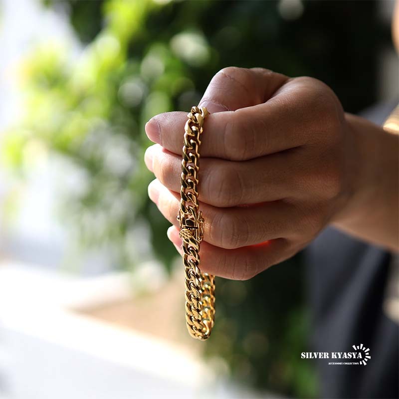 HIP-HOPアーティストがこよなく愛する定番のマイアミキューバンリンクチェーンのブレスレットタイプ。喜平チェーンとも呼ばれるこのブレスレットは重厚感が腕元のアクセントに最適なアイテムです。