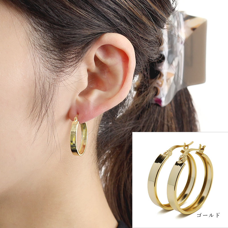 飽きの来ないシンプルなデザインが魅力の大ぶりフープピアス。表面のツヤっとしたテクスチャも魅力です。