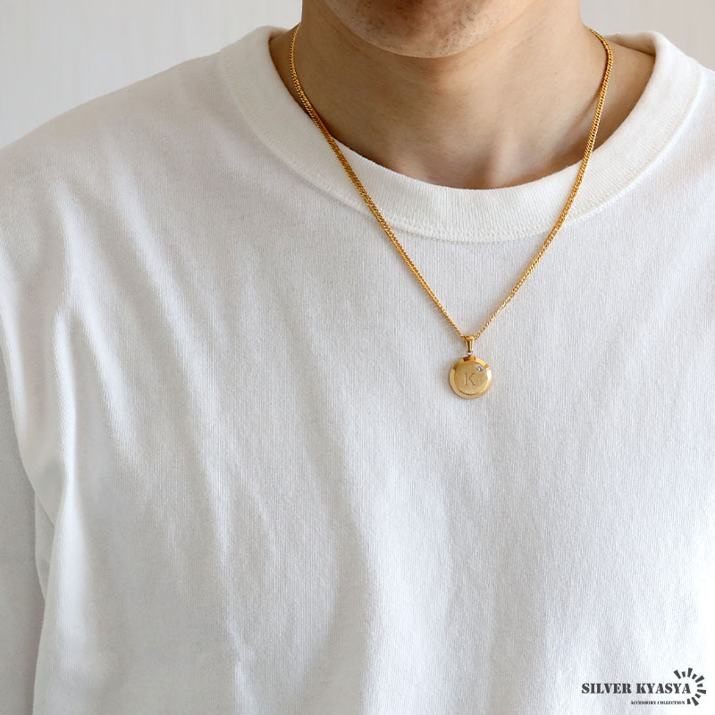 艶消しのラウンドプレートにアルファベットをあしらったイニシャルネックレス。小粒のストーンがワンポイントに効いた、洗練されたデザインが魅力。自分へのご褒美や、大切な人への贈り物としてもおすすめ。