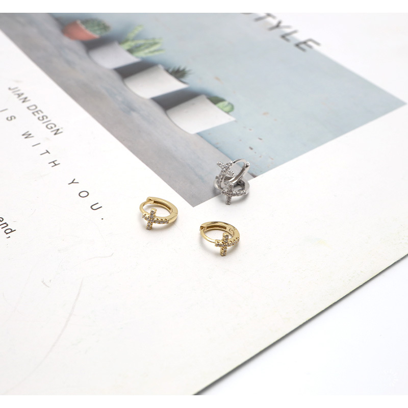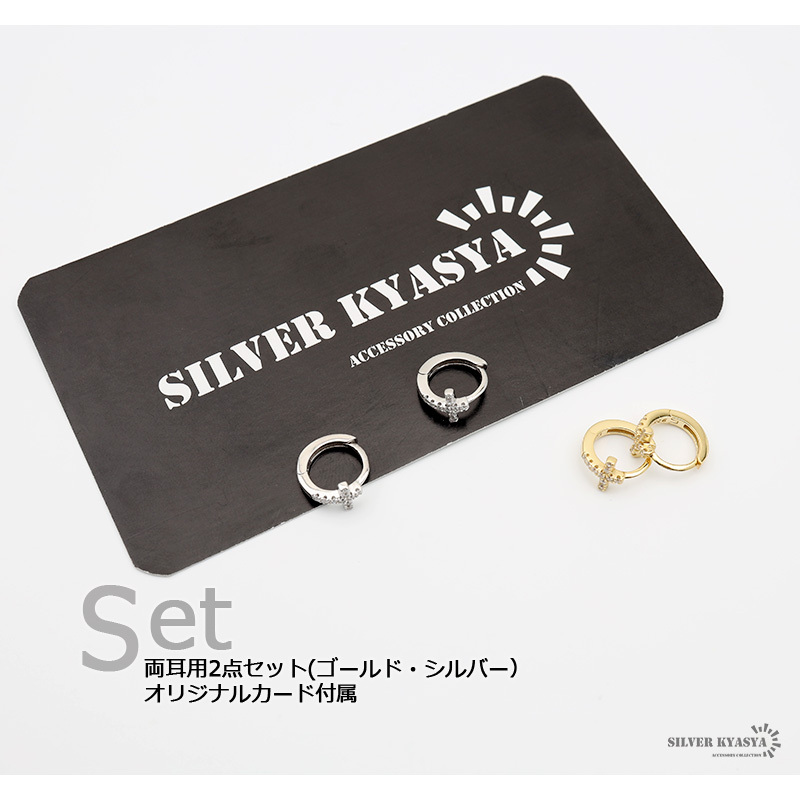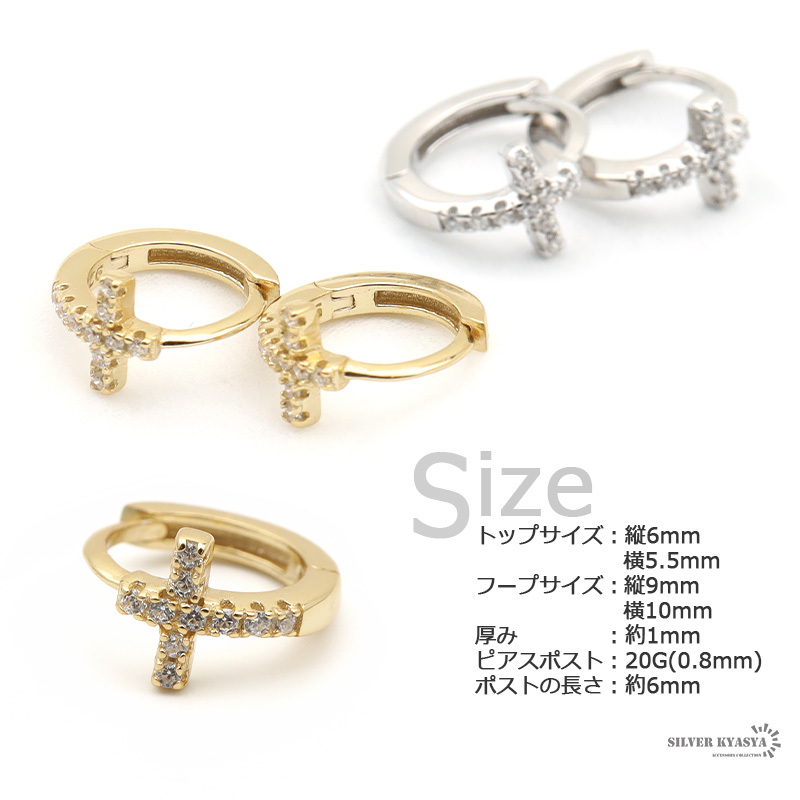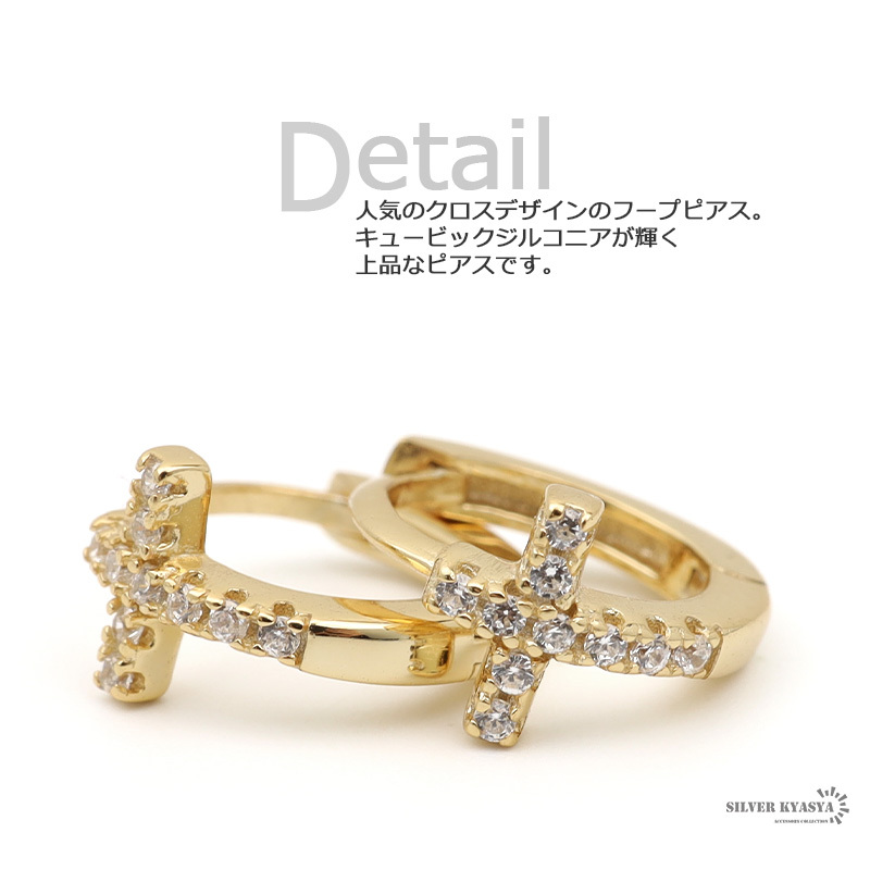 ■人気のクロスデザインのフープピアス。キュービックジルコニアが輝く上品なピアスです。