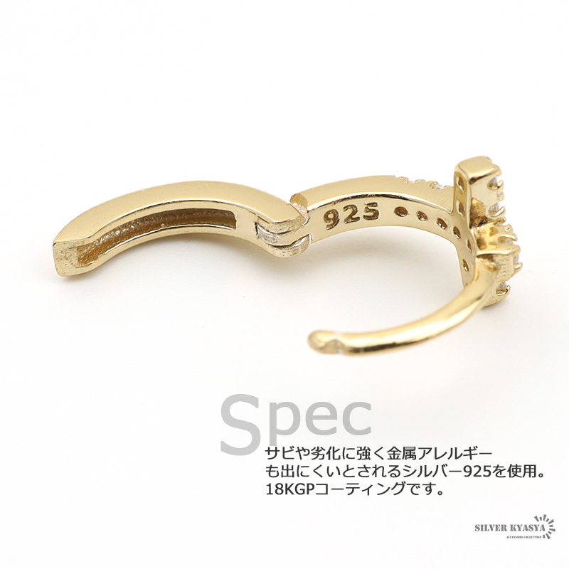 トップサイズ:縦6ミリ横5.5ミリフープサイズ:縦9ミリ横10ミリ厚み:約1ミリピアスポスト:20g(0.8ミリ)ポストの長さ:約6ミリ