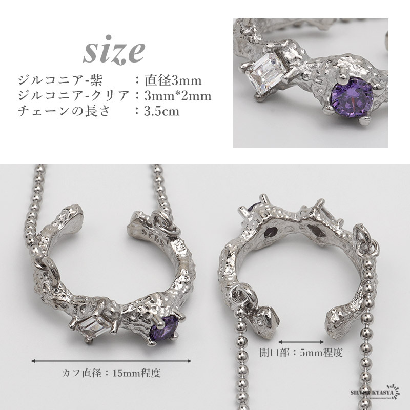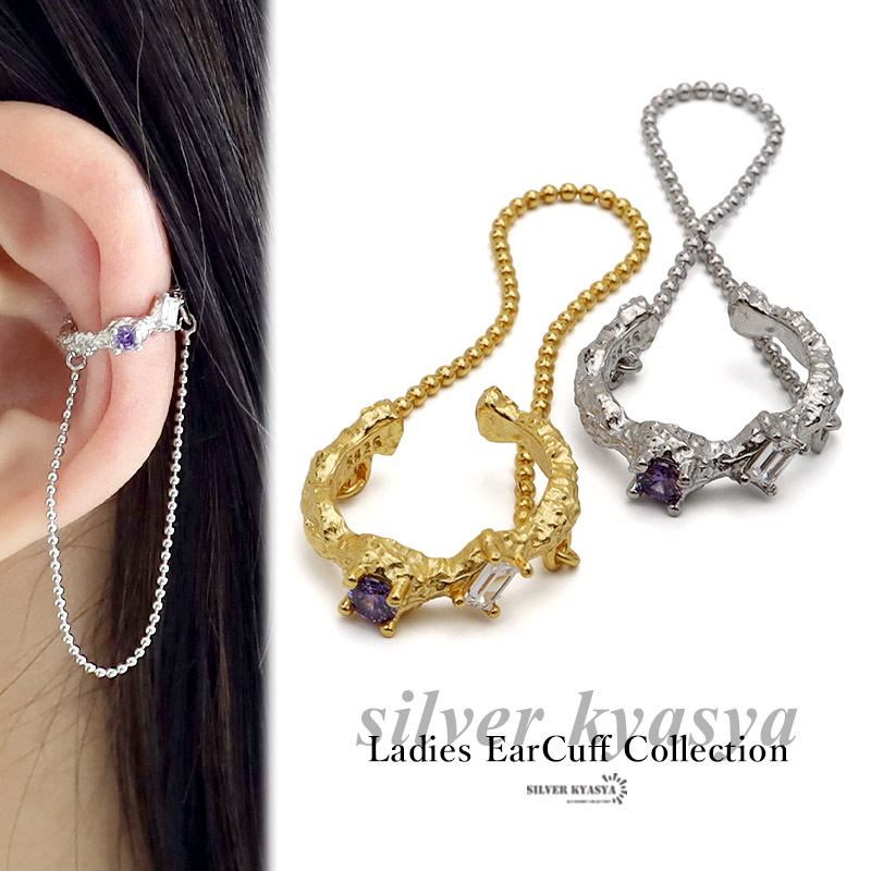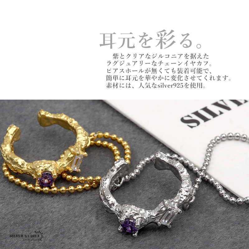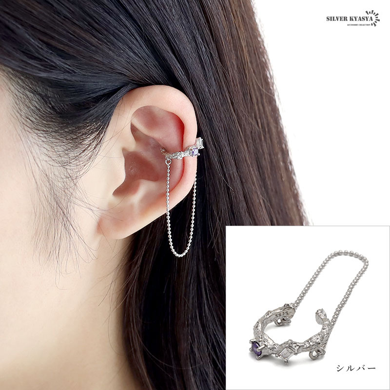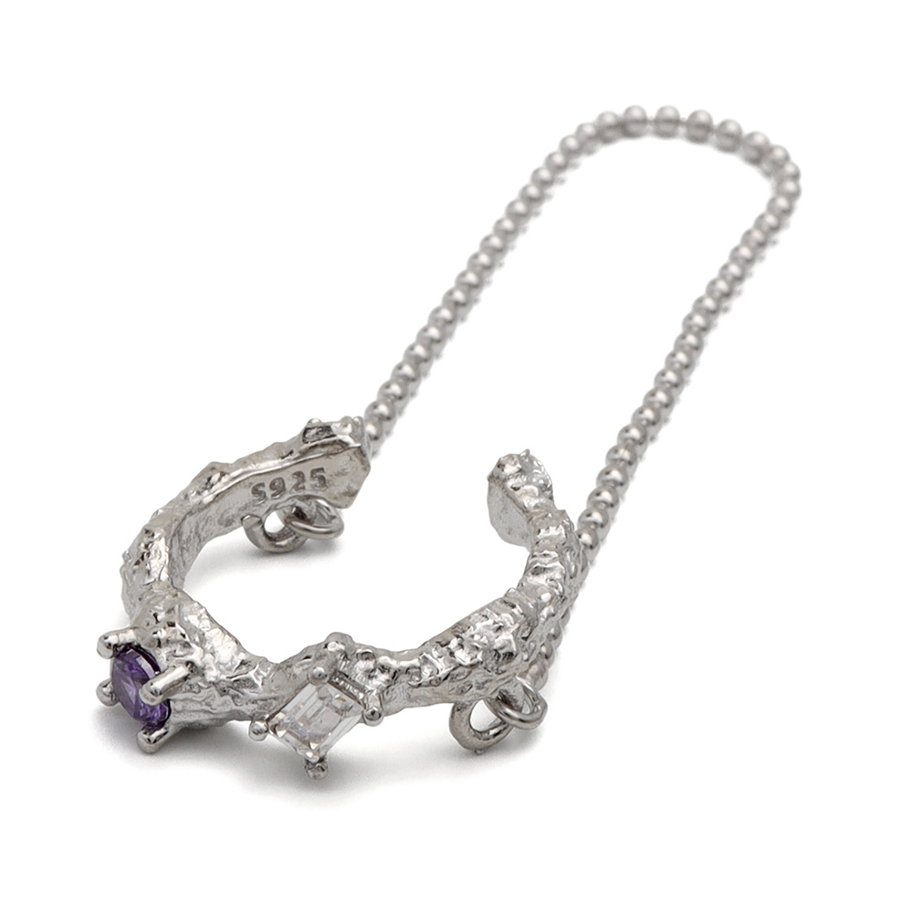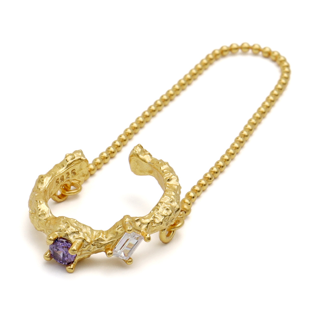 紫とクリアなジルコニアを据えたラグジュアリーなチェーンイヤカフ。