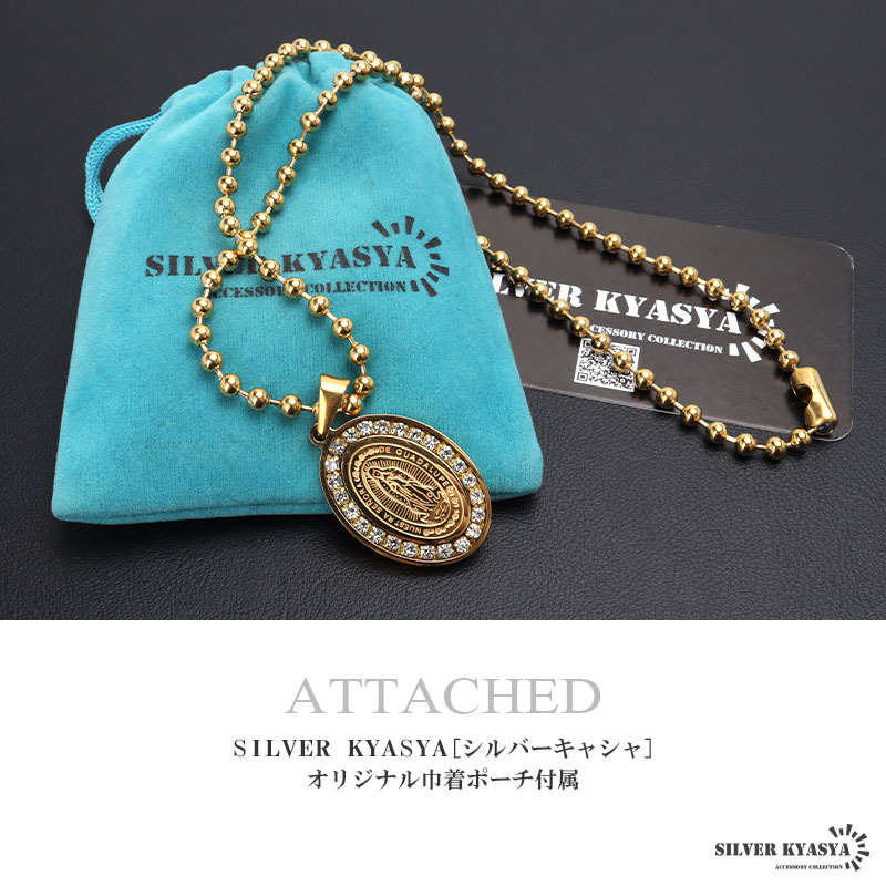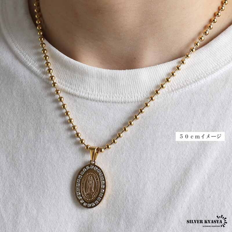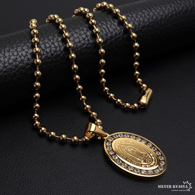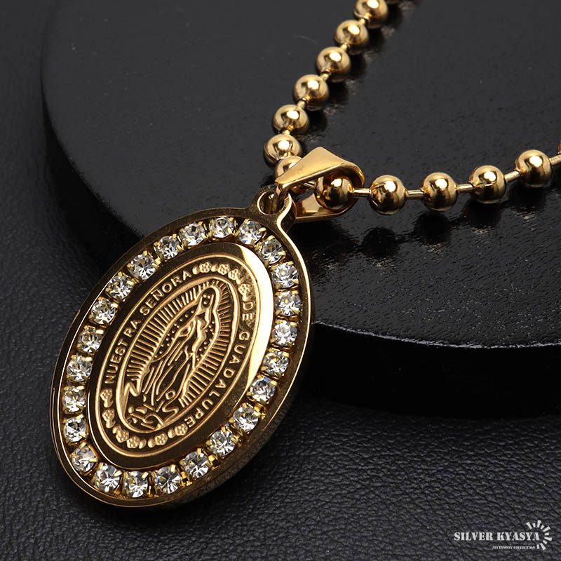 | 商品概要 | ■ITEM DETAIL 聖母マリアを描いたコイン「不思議のメダイ」をモチーフにしたネックレス。メダイの表面は鏡面仕上げのような光沢感があります。幅太めのボールチェーンとキラキラ輝くストーンが首元に存在感を与えてくれます。HIP HOPスタイルやB系ファッション、ストリート系にもおすすめ◎ ■ステンレス素材を使用 金属部分は頑丈なことで知られるステンレス素材を採用。耐久性はもちろん耐水性も高く水場での着用も可能。金属アレルギーも出にくいとされている金属です。 |