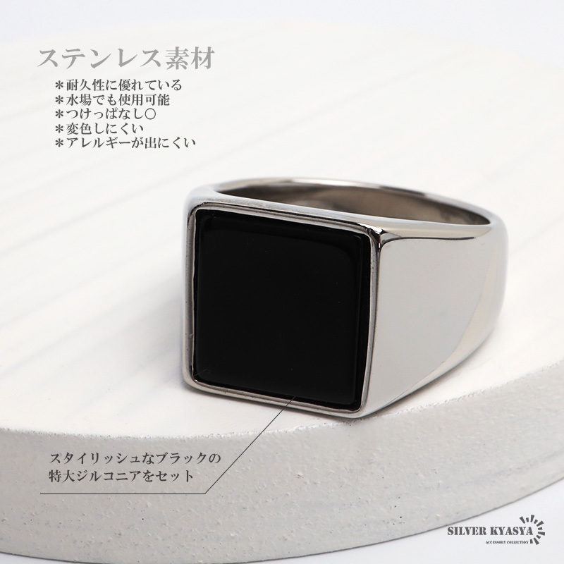 | 商品概要 | ■ITEM DETAIL ブラック×シルバーのコンビカラーが目を引く印台リング。シャープなシルエットと洗練されたシンプルなデザインが都会的な印象を与えるアイテム。印台にはブラックのジルコニアをセットし、落ち着いた輝きを放ちます。 ■ステンレス素材を使用 金属部分は頑丈なことで知られるステンレス素材を採用。耐久性はもちろん耐水性も高く水場での着用も可能。金属アレルギーも出にくいとされている金属です。 |