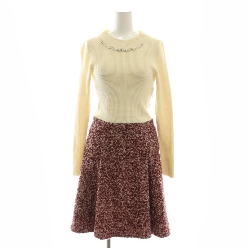 ブルーレーベルクレストブリッジ BLUE LABEL CRESTBRIDGE ドッキングワンピース 長袖 ミモレ ロング ウール 36 アイボリー 赤 レッド