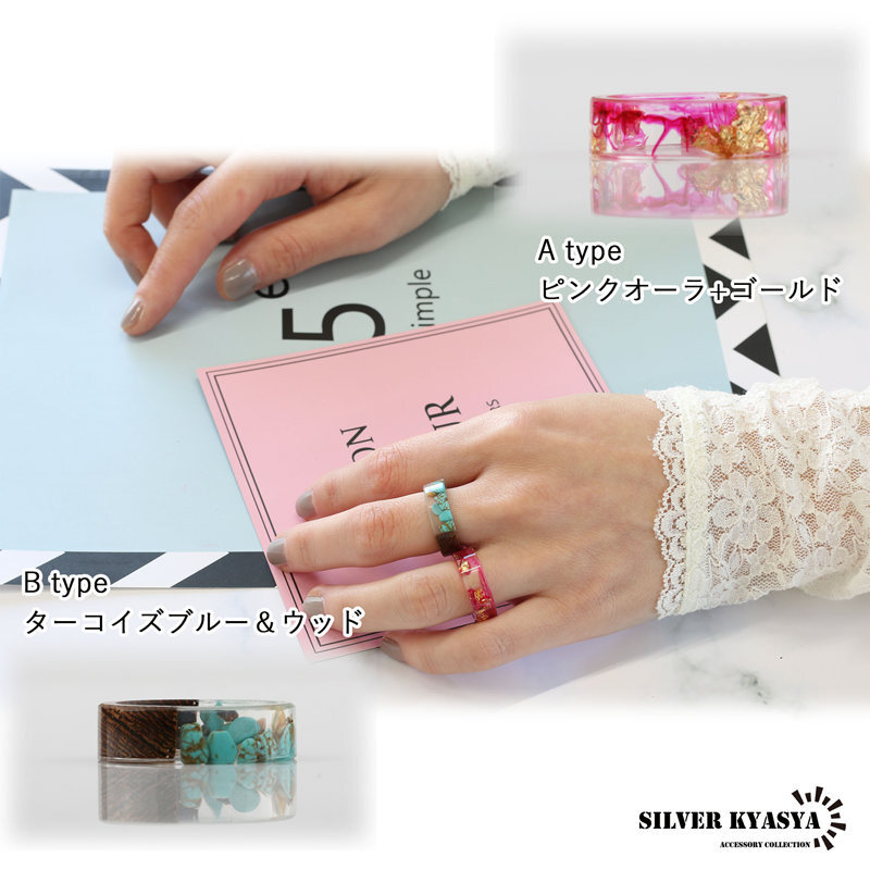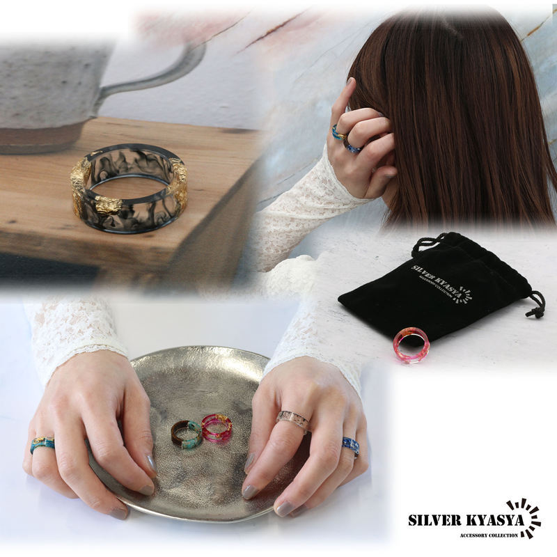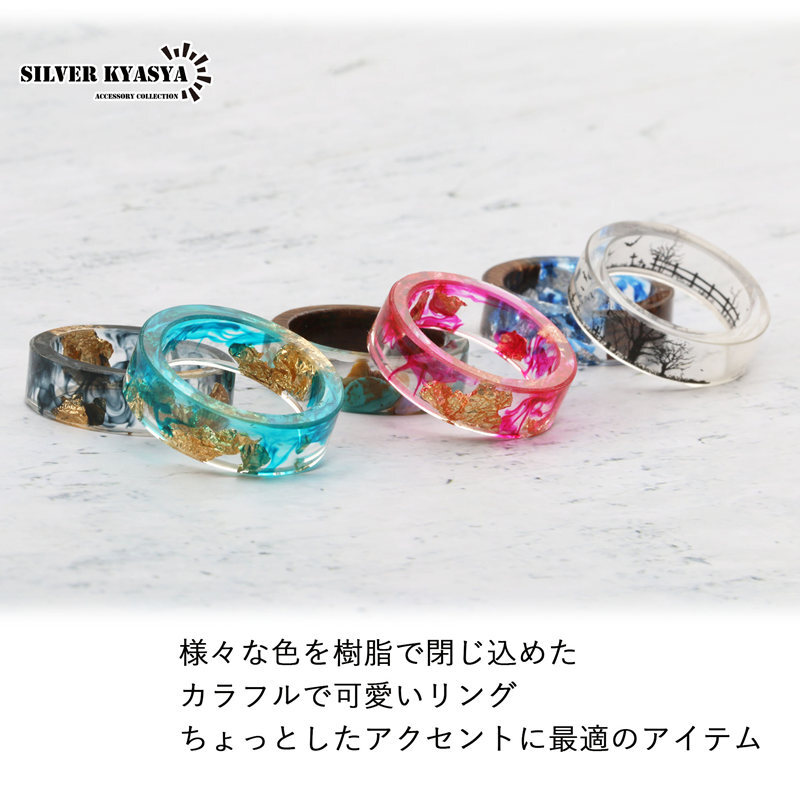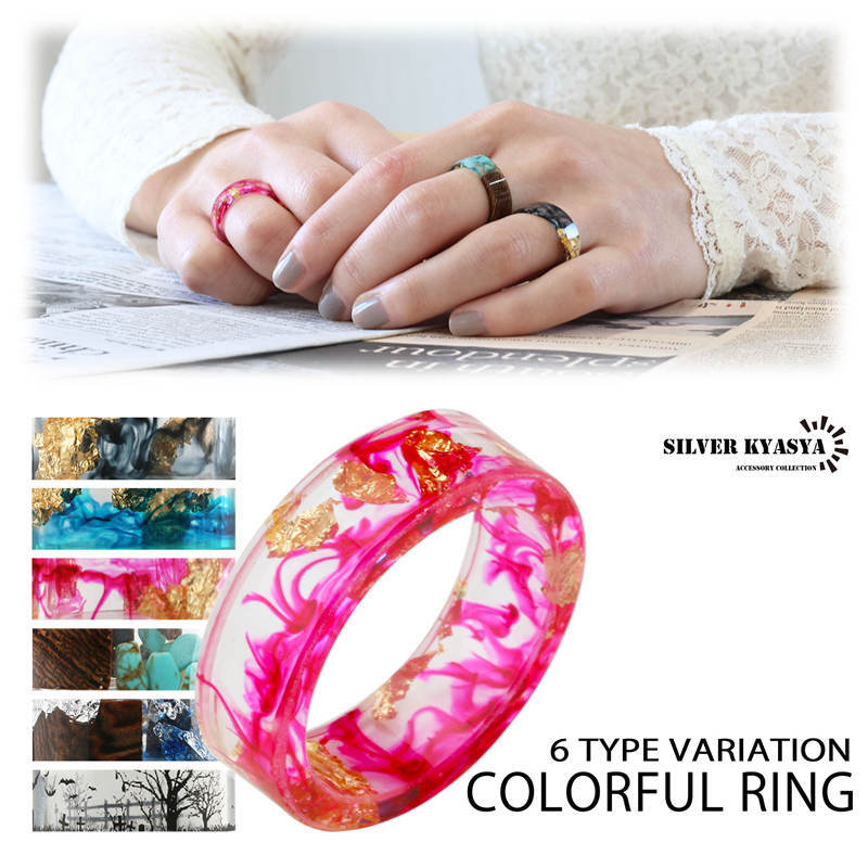 様々な色を樹脂で閉じ込めたカラフルで可愛いデザインのリング