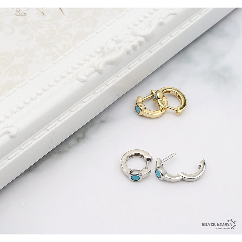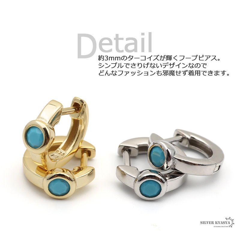 ■約3ミリのターコイズが輝くフープピアス。シンプルでさりげないデザインなのでどんなファッションも邪魔せず着用できます。