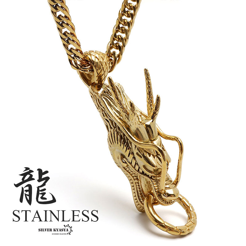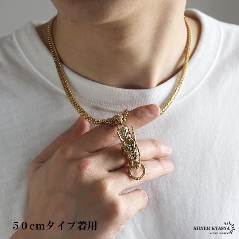 存在感満点のドラゴンヘッドを模したネックレス。細部までしっかりと表現されており迫力満点の仕上がり。