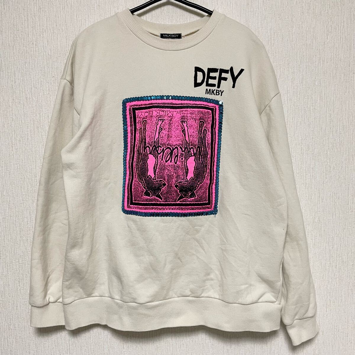 即決☆MILKBOY ミルクボーイ スウェット 犬 プリント スパンコール クリームホワイト系 MKBY レア 希少 トレーナー