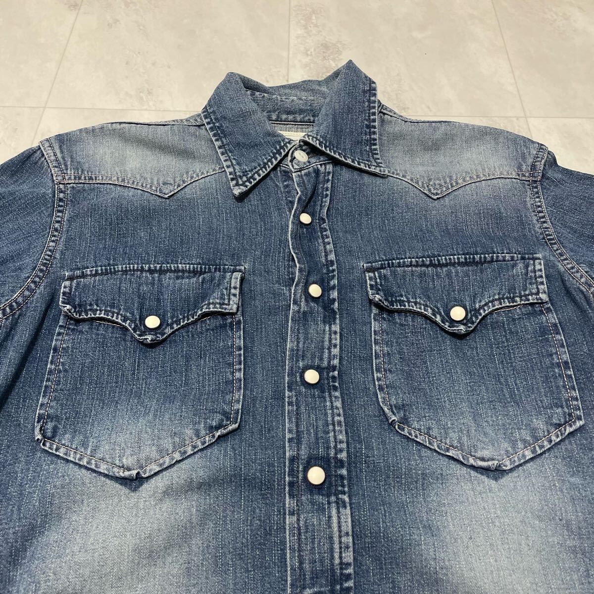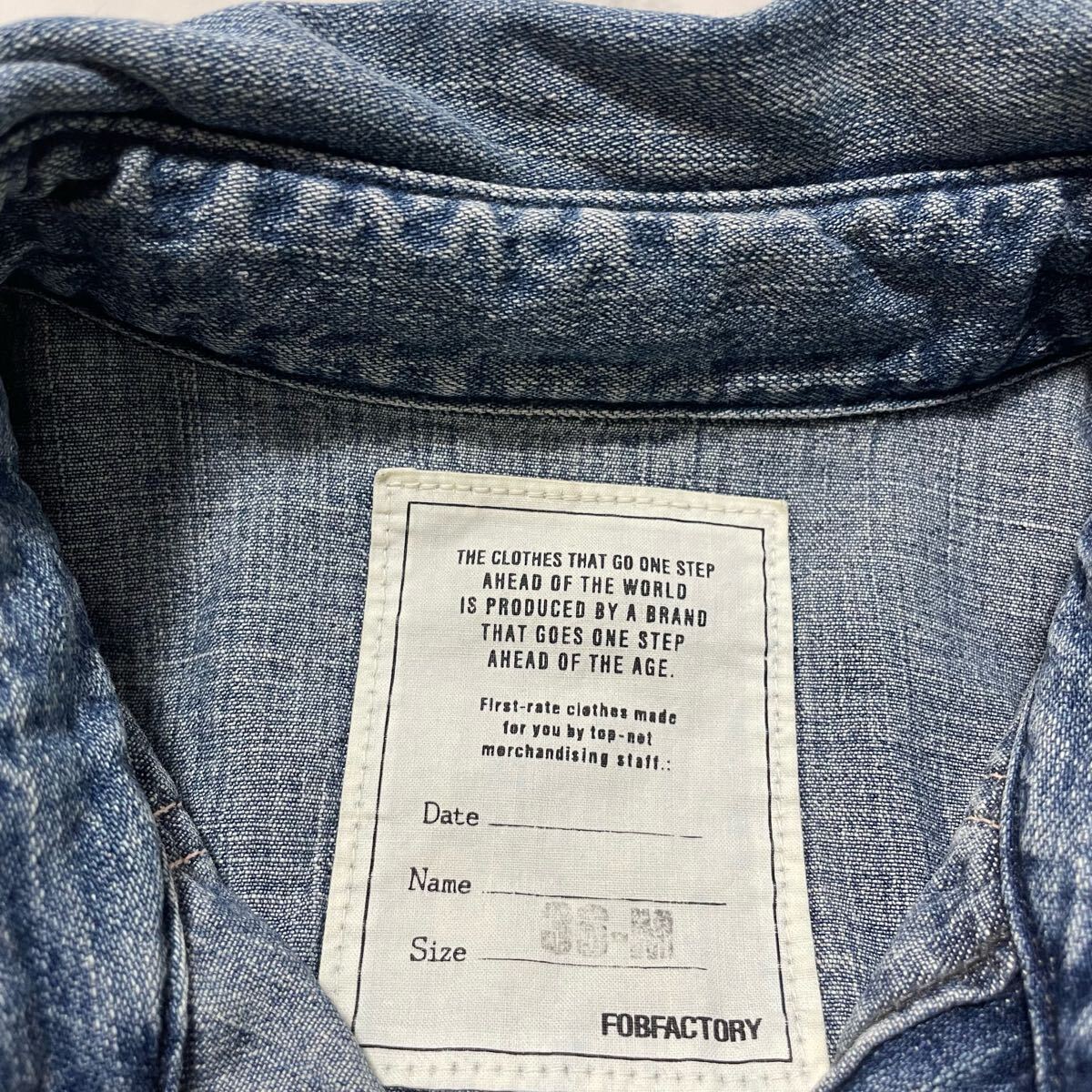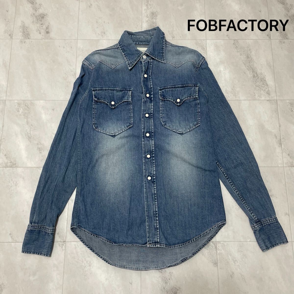 FOB FACTORY エフオービーファクトリー デニムシャツ 日本製 ウエスタンシャツ 長袖 ユーズド加工 インディゴ サイズM 玉SS3033