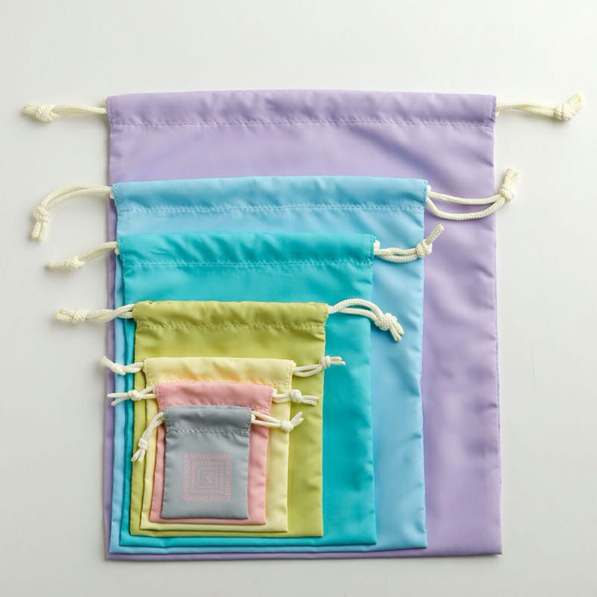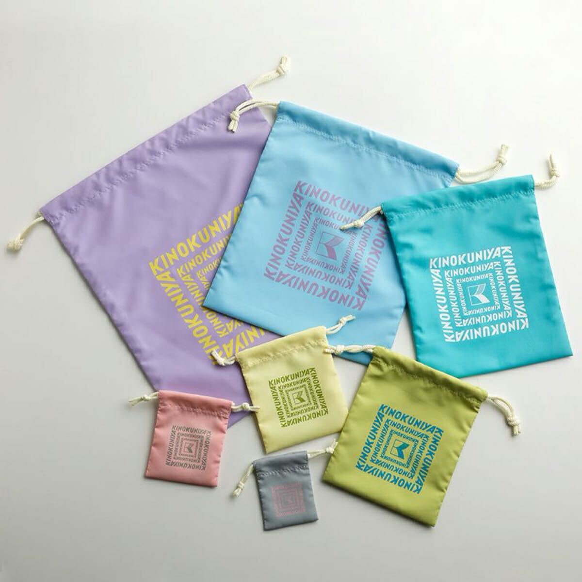 スーパーマーケット開業70周年記念巾着。サイズが様々なため、用途によって使い分けられます。