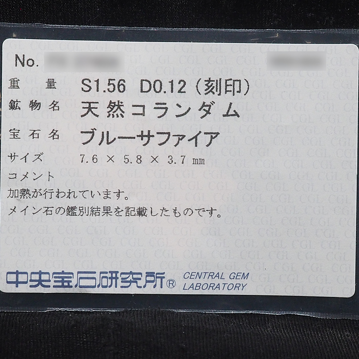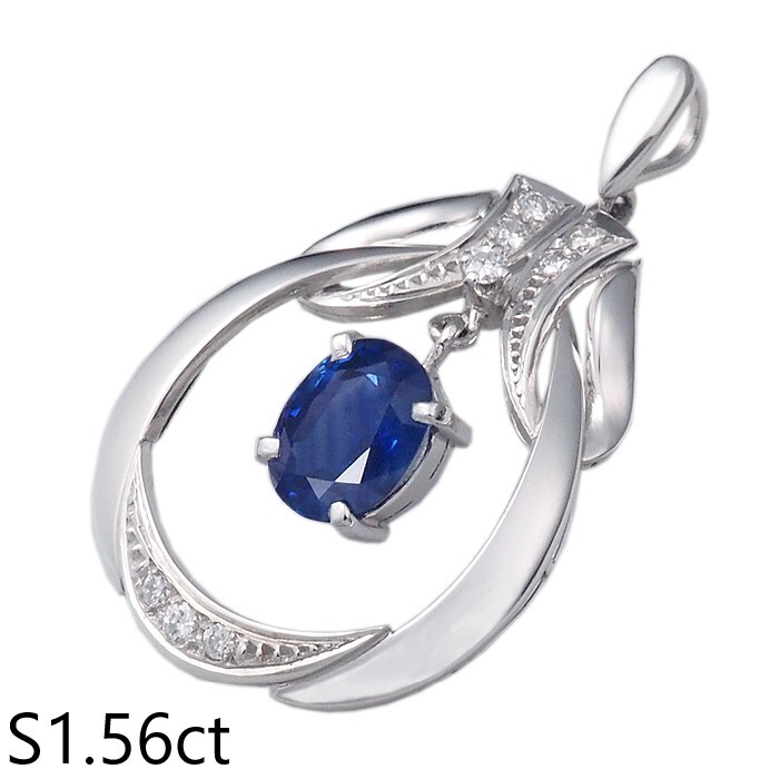 詳細:ノーブランド サファイア/1.56ct ダイヤ/0.12ct Pt900 ヘッド ペンダントトップ ソーティング付き 仕上済