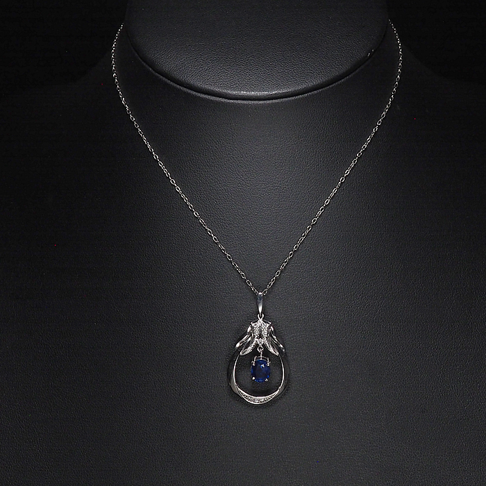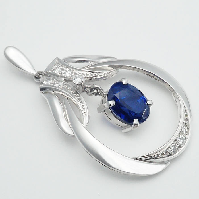 オーバルカットのサファイアと煌めくダイヤモンドで仕立てたプラチナ製のペンダントトップです。お手持ちのチェーンと合わせてお使いいただけます。