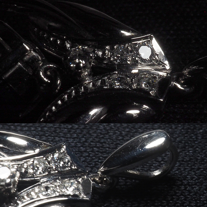 ルーペで見るとダイヤに微細な傷、地金部分にスレや小傷が見られますが、大きく目立つような傷はなく、状態の良いお品物となっております。