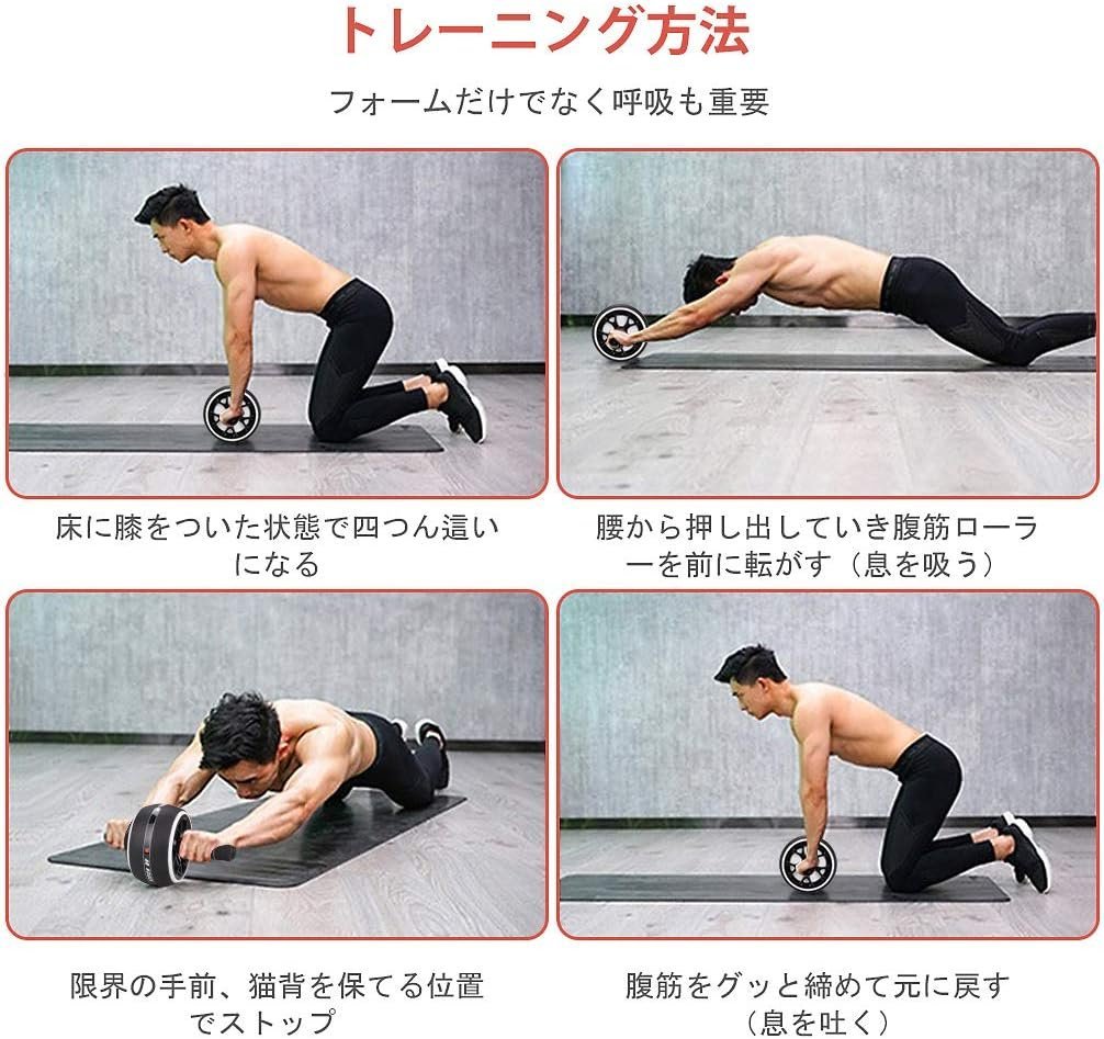 黒 腹筋ローラー 膝保護マット付き 腹筋トレーニング器具 筋トレグッズ エクササイズローラー 体幹ストレッチ ダイエット 滑り止め 耐荷重