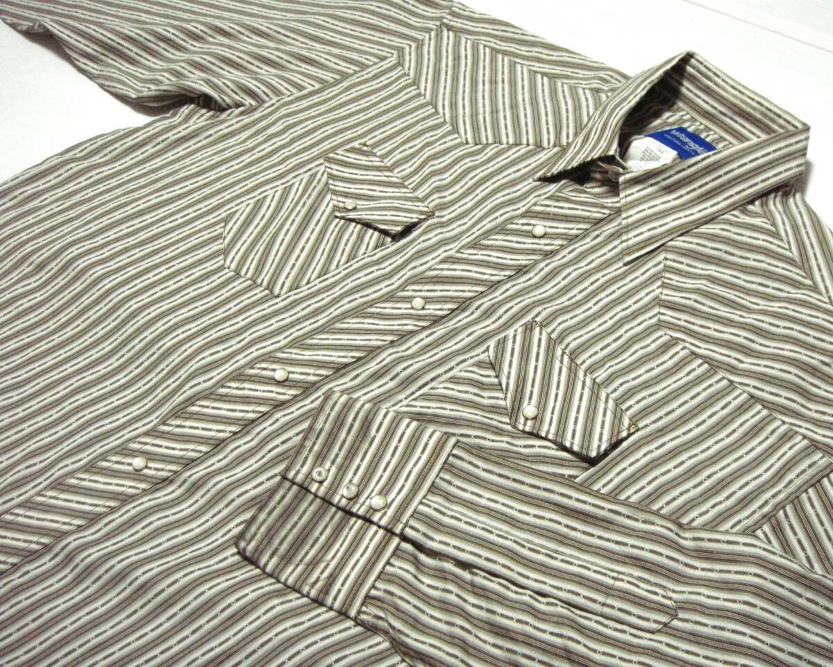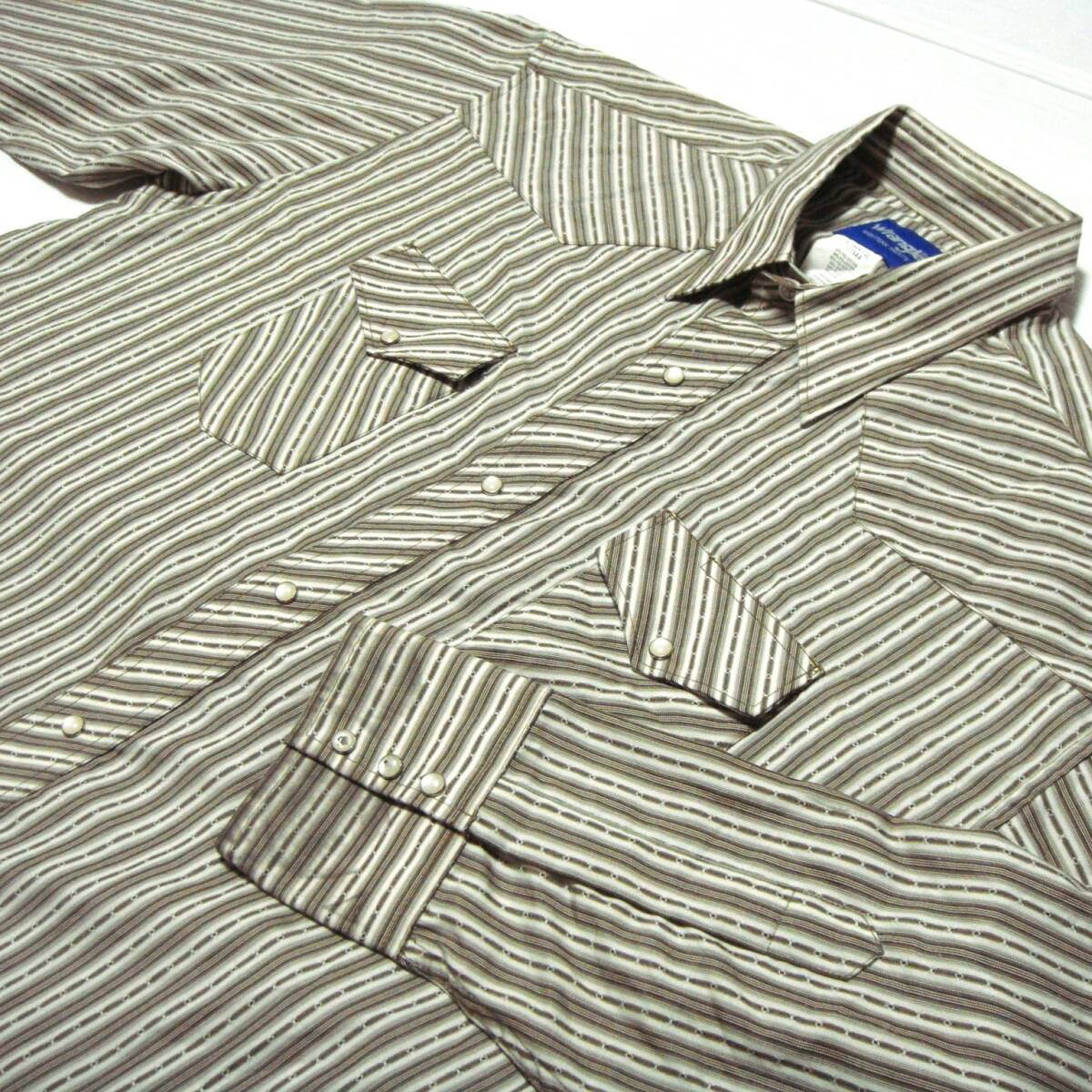 【 見てくださり 感謝します 】 【ブランド】 Wrangler / ラングラー ウエスタンの老舗 ラングラー ■ RODEO SNAP SHIRT ウエスタンシャツ フロントヨーク & バックヨーク ストライプ 化繊地 アメリカ古着 USA製ではありません v(^-^)v ■ サイズが合う方は、 是非!是非!!ゲットしてやって下さい (^-^)v 【表記サイズ】 USA XLT XGA TGL 日本サイズ 3L ぐらいです。 【実寸】 肩幅 58cm (左肩ステッチ〜右肩ステッチまで計測) 身幅 68cm (脇あたりで計測) 着丈 89cm (バック襟の付け根から計測) 袖丈 66cm (肩からの計測) 素人採寸です。多少の誤差はご了承下さい! 【素材】 コットン % ポリエステル 90 % レーヨン 10 % 【状態】 USED 右袖口にしみ。左袖にしみ。(写真)。 部分洗いである程度は落ちると思われます。 襟 ・ 袖口に擦れ無し ^ ^ v (写真)。 【 見てくださり感謝いたします 】 ↓よろしければ、青地を クリックして下さい。 他にも出品しています。ご覧いただければ幸いです。 ■ リーバイスデニムとウエスタンシャツを主に出品させていただいています。 ■ ネイティブ柄 ・ ビンテージ 色々なウエスタンシャツを常時出品中 他にも出品しています。ご覧いただければ幸いです。 ↑よろしければ 青地を クリックして下さい。 o2 | ||||