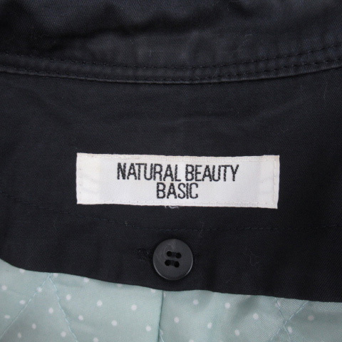ナチュラルビューティーベーシック トレンチコート スプリングコート ロング丈 中綿ライナー付き L 紺 ネイビー /SM9 レディース