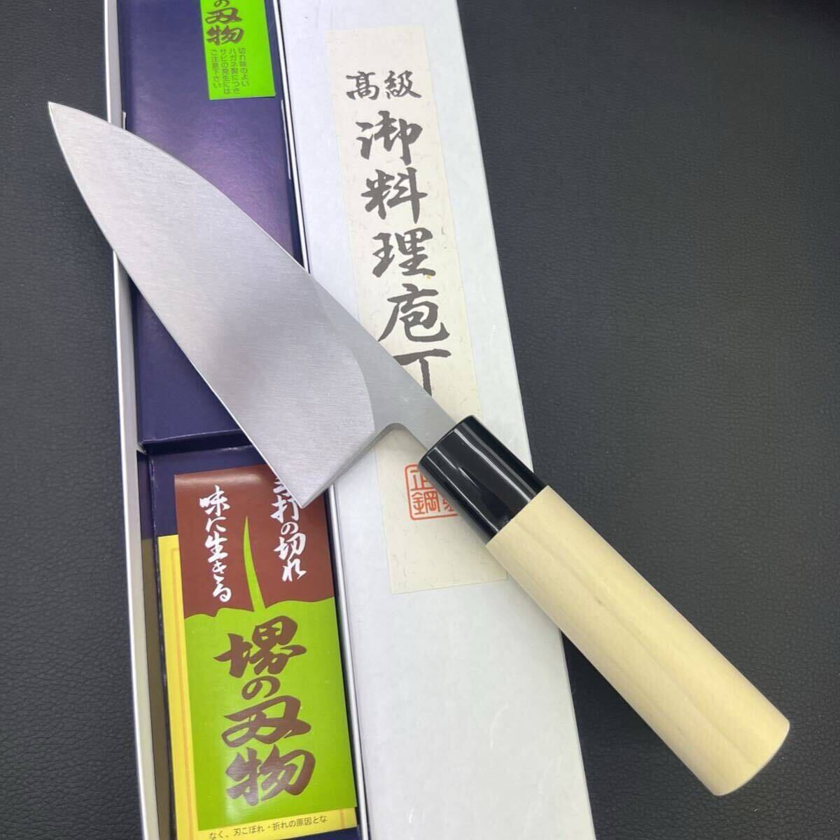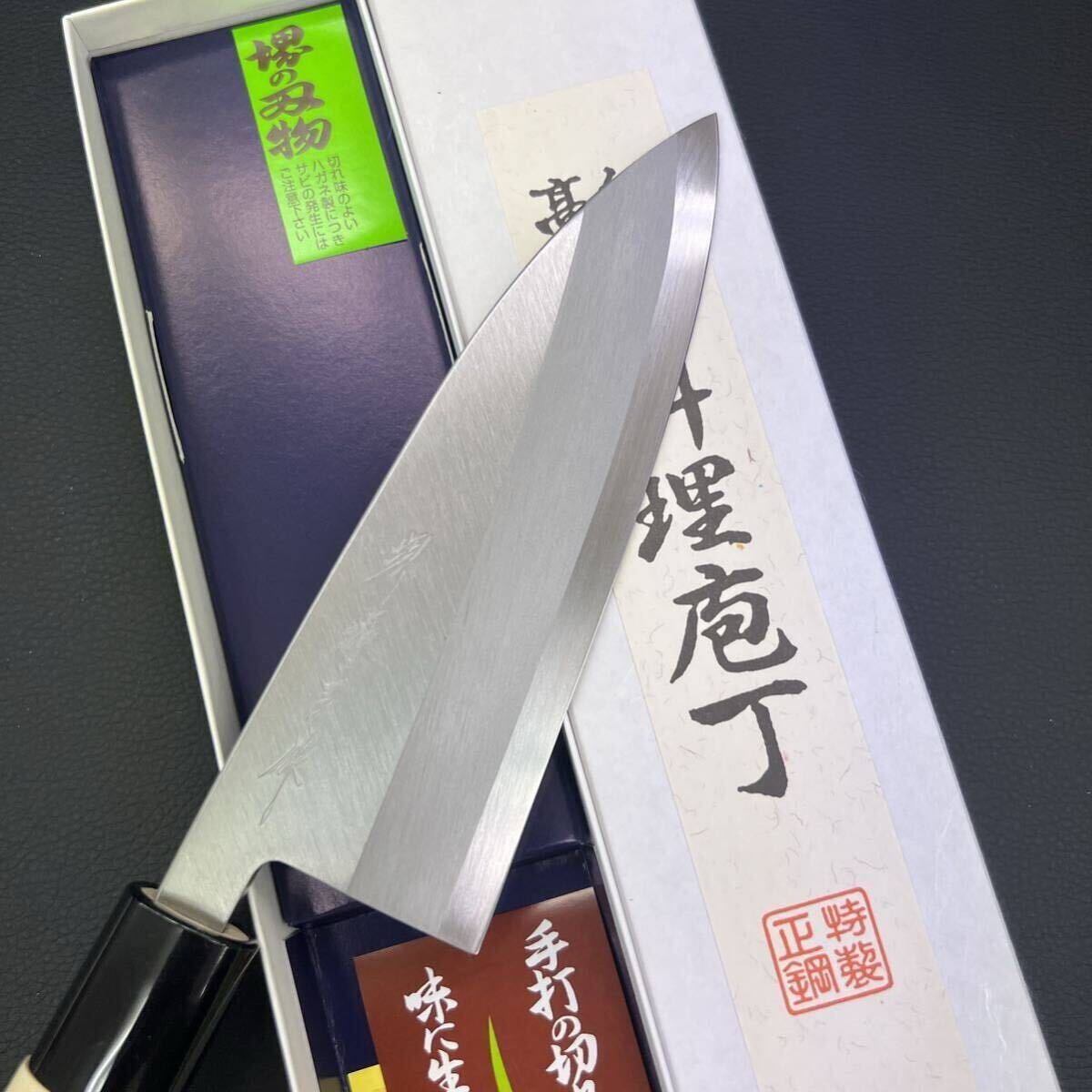 ★新品未使用★送料込★堺打刃物はがね鍛造出刃包丁150mm5寸堺の化粧箱入り調理器具 右片刃仕様和包丁