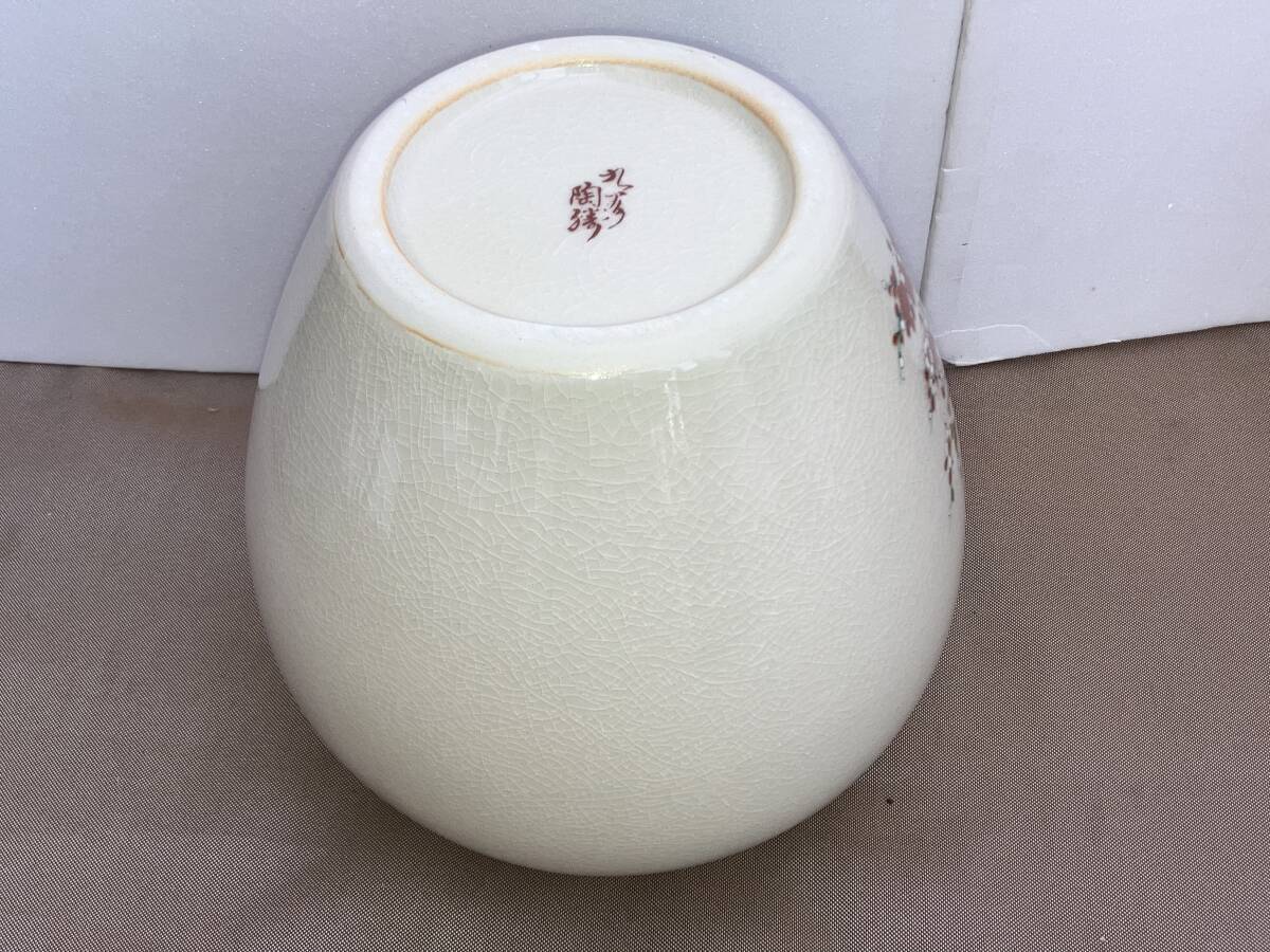 | 未使用品になります。 九谷焼の特徴は、「呉須(ごす)」とよばれる藍青色で線描きし、「五彩」とよばれる、赤・黄・緑・紫・紺青の5色での絵の具を厚く盛り上げて塗る彩法です。 絵柄は大胆な上絵付けがなされており、力強い印象を与えます。 九谷焼の色彩の深みと風合いの味わいのある花瓶です。 サイズ(約 ):口径12*高さ23㎝ 梱包サイズ 80(予定) 未使用の状態に見受けられますが、長期保管の際の経年劣化が若干見られます。箱に傷みが見受けられます。 お渡しできるのは、写真に写っている物ですべてです。 専門的な知識がありませんので写真等でよくご確認ください。 クロネコヤマト宅急便の送料発払いのみです。 送料は、下記の『発送詳細』をご覧ください。 |