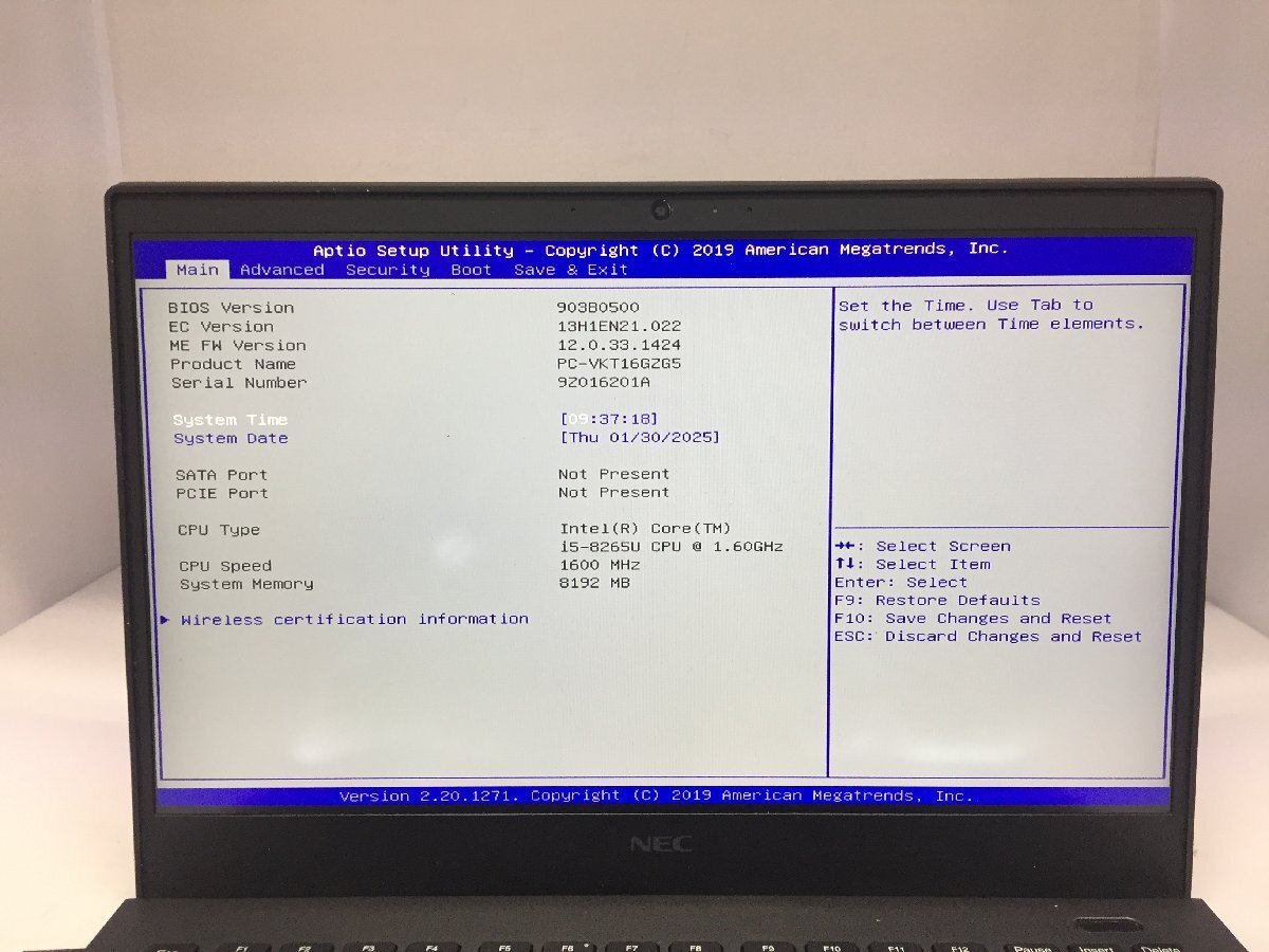 ジャンク/ NEC PC-VKT16GZG5 Intel Core i5-8265U メモリ8.19GB ストレージ無し 【K07613】