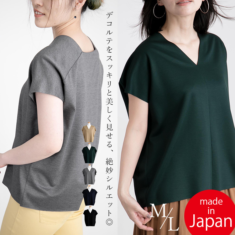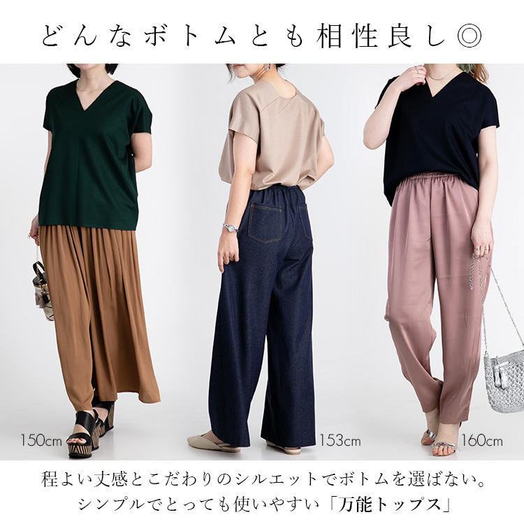 シンプルなデザインで細見え効果も◎!Vネックのきれいめカットソープルオーバーです