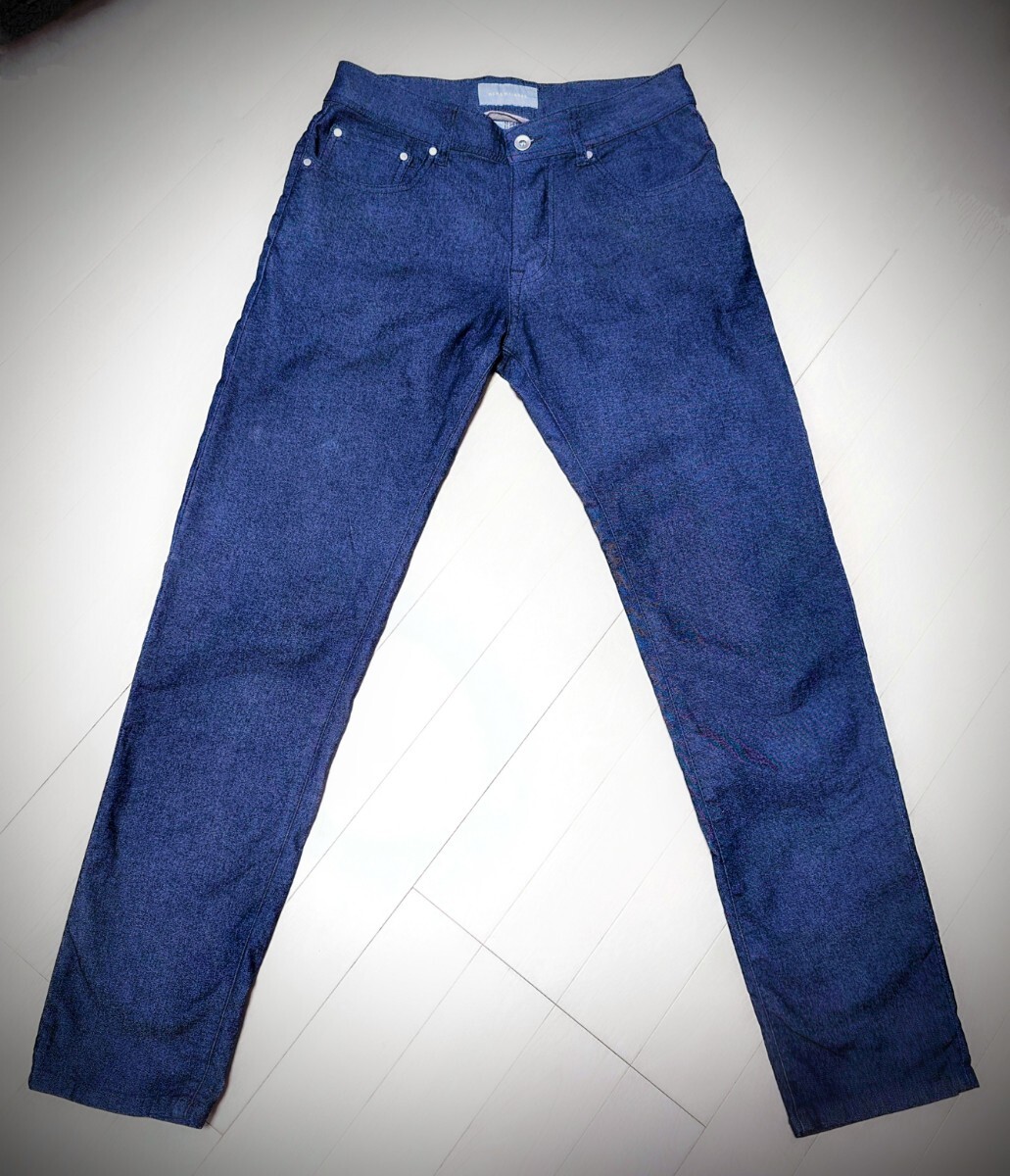 MELROSE メルローズ ダークブルーのスリムフィットデニム、4ポケットデザイン。