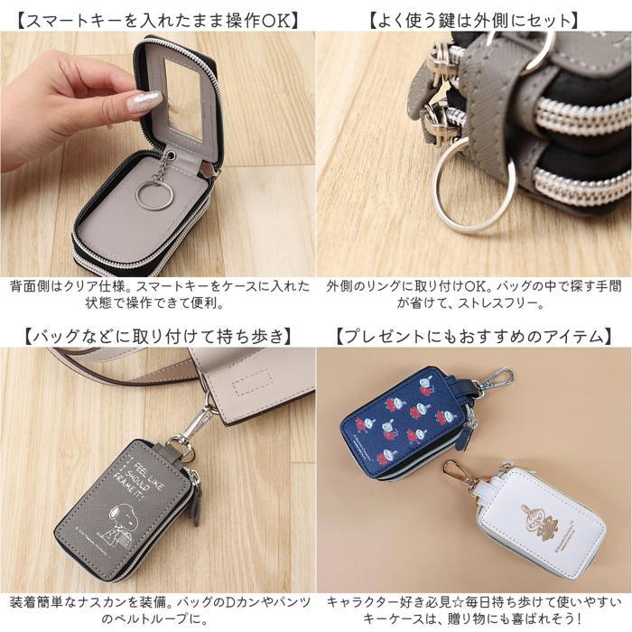 商品説明 | ・・【大切な鍵をすっきりひとまとめ】 ・使い勝手にこだわった、仕分け収納◎キャラクターデザインの「ダブルポケット キーケース」。 ・【大人可愛いキャラクターデザイン】 ・合皮のケースにキャラクター柄をON♪大人も持ちやすい、落ち着きのある仕上がり。 ・【鍵を仕分けできるダブルポケット】 ・自宅用の鍵とスマートキーを分けてIN。スマートキーの傷つきを防ぎ、出し入れもスムーズ。 ・(※)内側のキーリングは前面側2つ、背面側1つ。 ・【ガバっと開くラウンドファスナー】 ・・2つのポケットは、どちらも180度オープン。ファスナーを閉じれば、紛失も防止。 ・【スマートキーを入れたまま操作OK】 ・背面側はクリア仕様。スマートキーをケースに入れた状態で操作できて便利。 ・【よく使う鍵は外側にセット】 ・外側のリングに取り付けOK。バッグの中で探す手間が省けて、ストレスフリー。 ・【バッグなどに取り付けて持ち歩き】 ・装着簡単なナスカンを装備。バッグのDカンやパンツのベルトループに。 ・【プレゼントにもおすすめのアイテム】 ・キャラクター好き必見☆毎日持ち歩けて使いやすいキーケースは、贈り物にも喜ばれそう! |