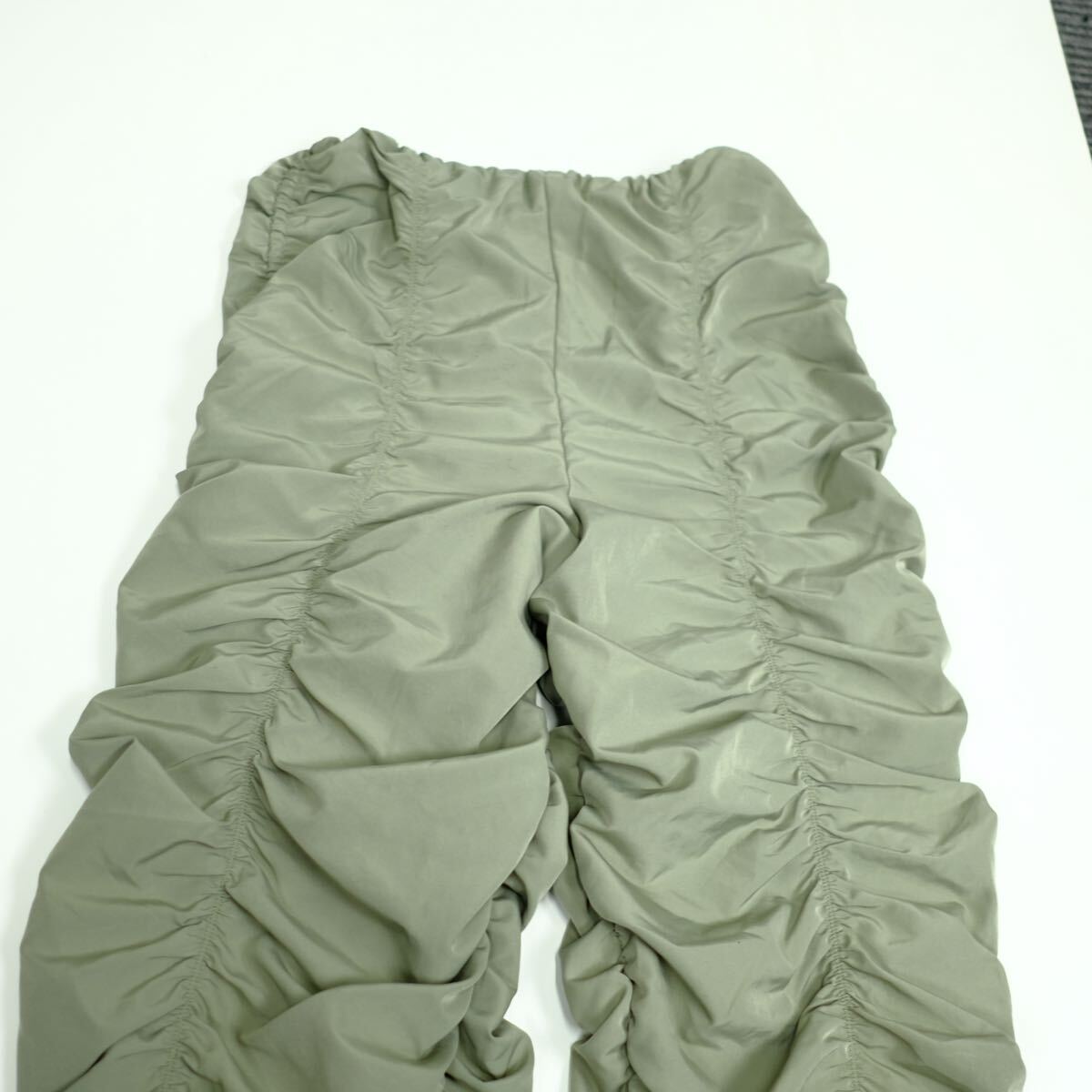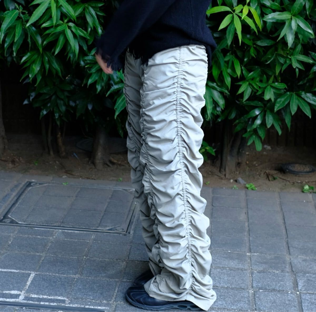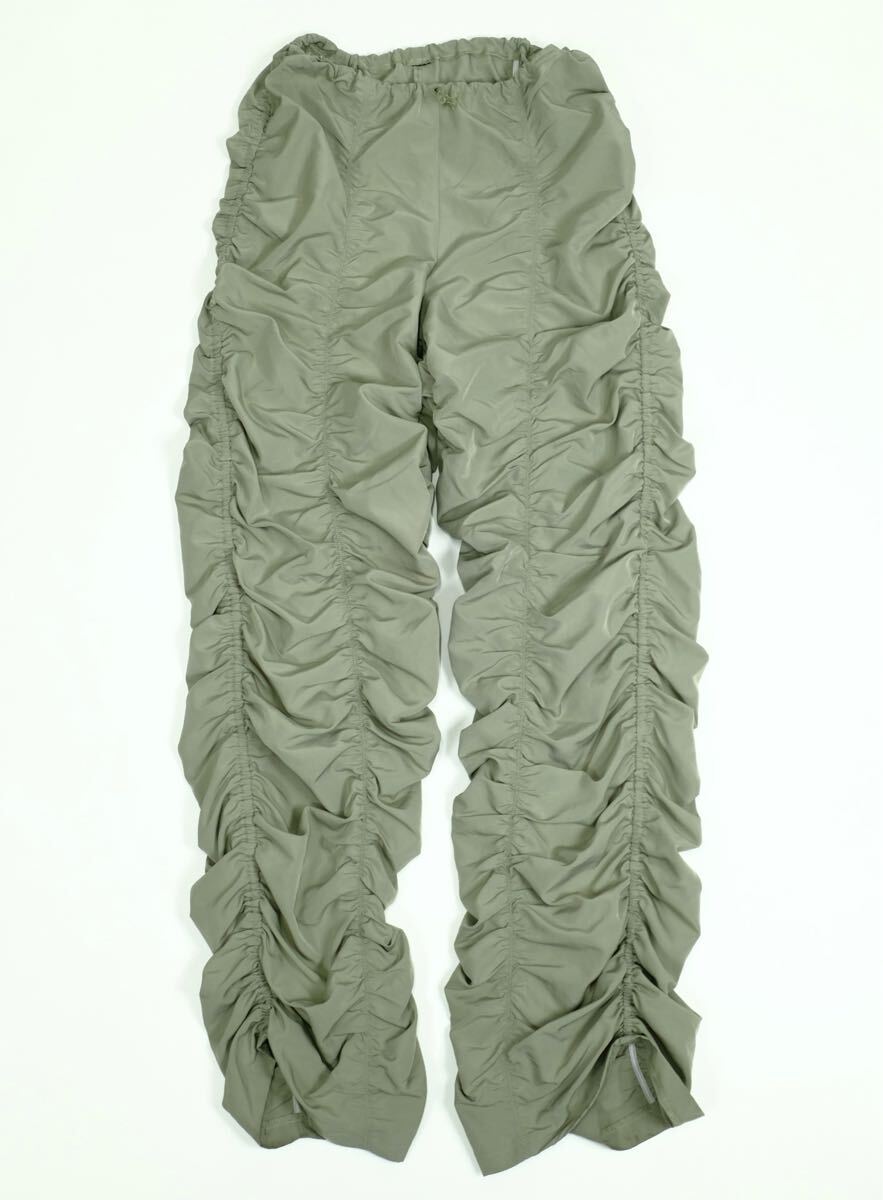 ゴムを全体に通すことによってギャザーのようなシワ感が出ているパンツ。