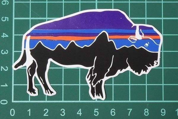 パタゴニアのフィッツロイ柄を纏ったバイソンステッカーの稀少なスモールバージョン2枚セットです。