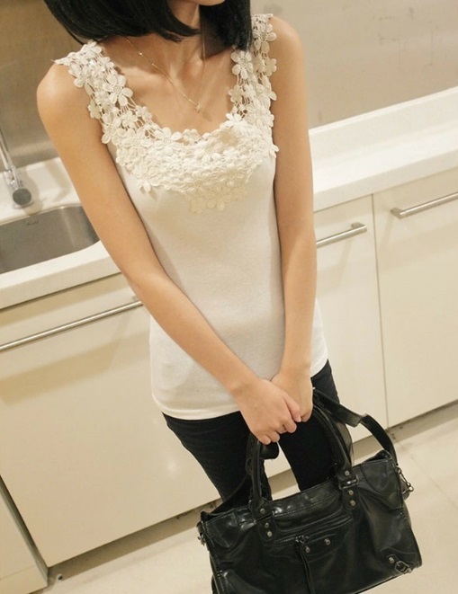 値下げしました!レース キャミソール カットソー レースカットソー 花レース ホワイト 白
