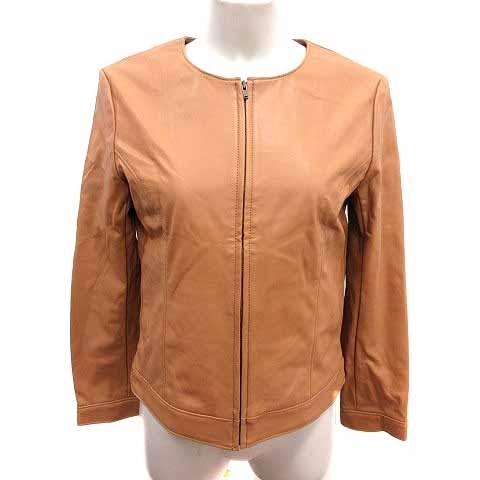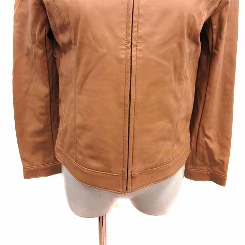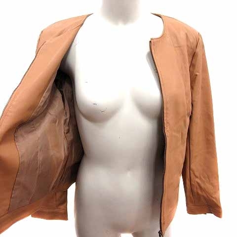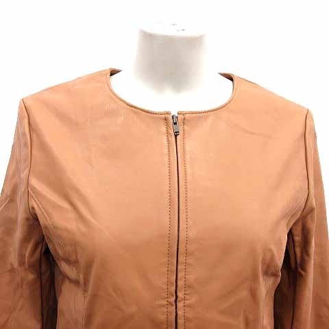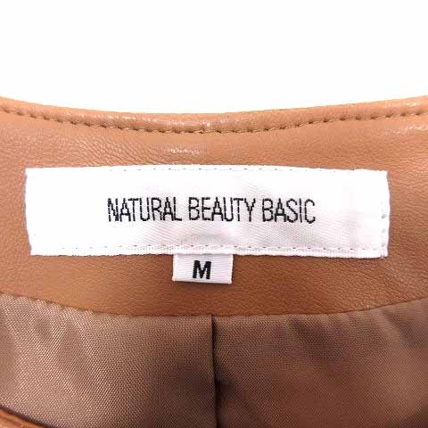 ナチュラルビューティーベーシック NATURAL BEAUTY BASIC ノーカラージャケット フェイクレザー ジップアップ M ベージュ レディース