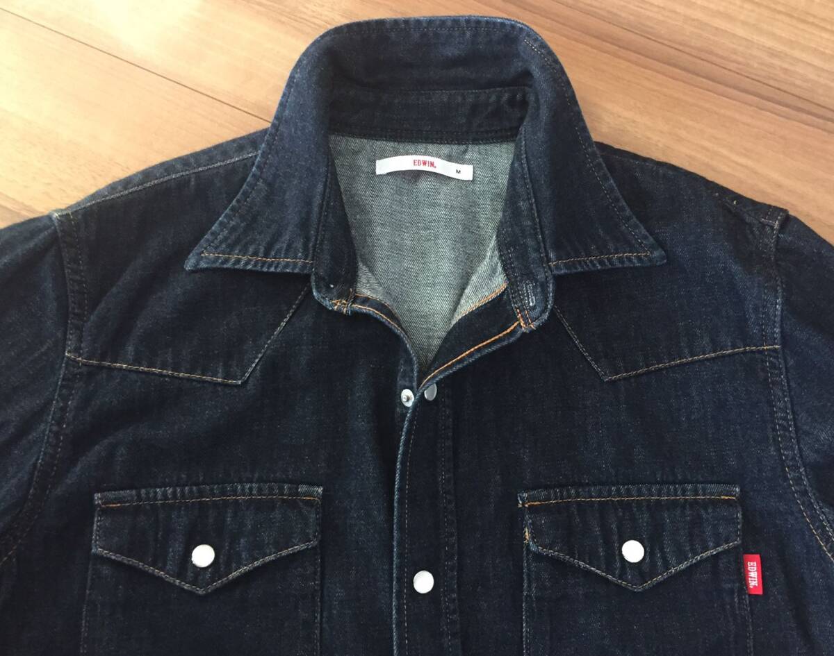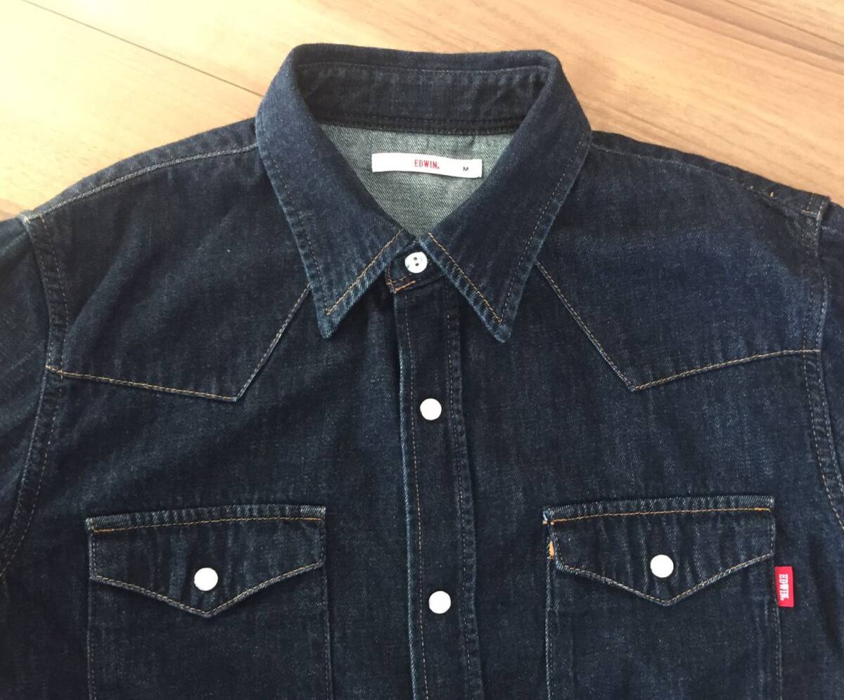 EDWINエドウィン・長袖デニムウエスタンシャツ・M・インディゴブルー・送料750円~