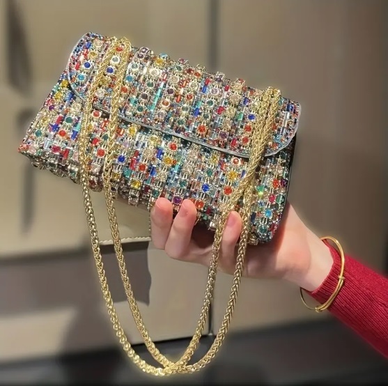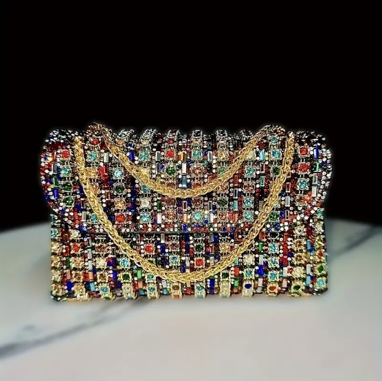 入荷!ビジュービーズショルダーバッグ 総ビーズ スパンコール カラフル