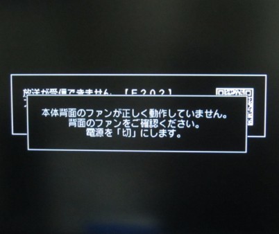 「本体背面のファンが正しく動作していません」などのメッセージが出て、