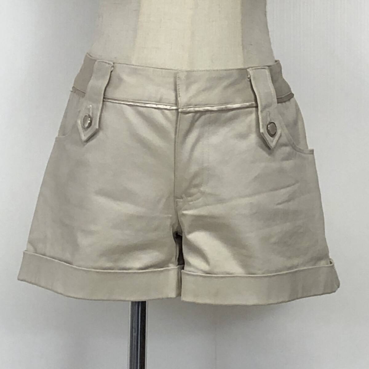 YX854 byebye レディース ボトムス ショートパンツ ショート丈 薄手ファスナー・ホック裏地 Mサイズ ベージュ 綿素材含 涼しげ おしゃれ 夏