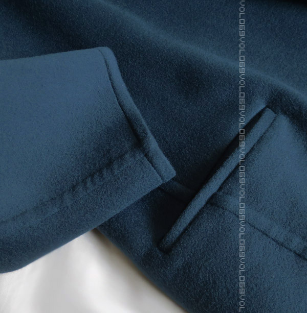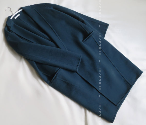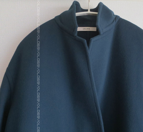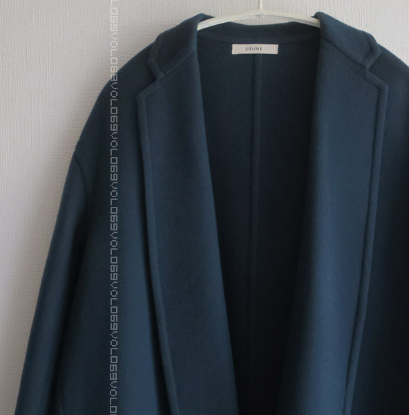 深めのピーコックブルー、オープンフロントにエッグシェイプ、落ちた肩からのフィービーらしい少しぷっくりした背中のライン、スタンドカラーでトラッドにも、肩を落としてラフめなコクーンフォルムでも、どちらも洗練された大人の雰囲気でとても素敵です★