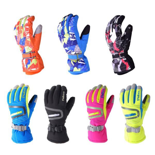 ♪mineka♪スノーボード スキー グローブ 手袋 ジュニア 5本指 防水防寒 厚手 中綿 雪上スポーツ 雪遊び ユニセックス 藍 213363-XL